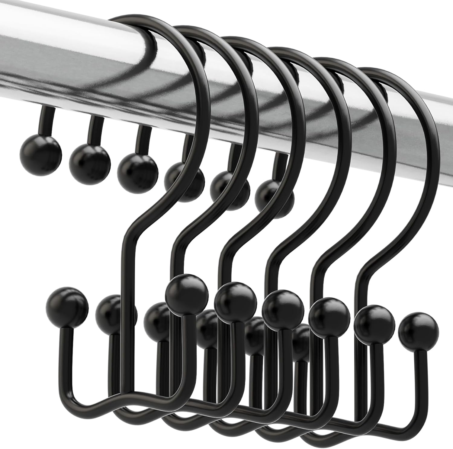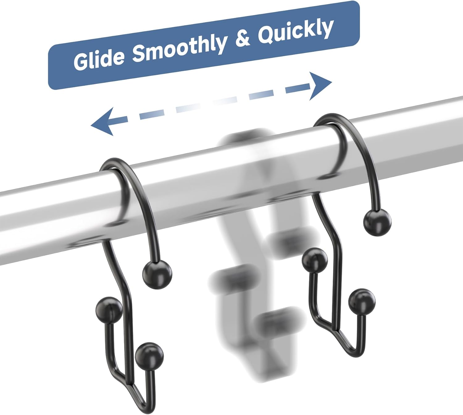 - Double hooks design - The double roller glide shower curtain hooks are strong enough to hold up shower curtain and shower liner.