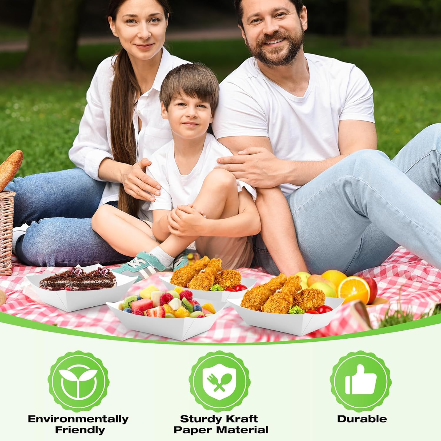 - Multi Purpose: These paper food trays are perfect for serving nachos, fries, popcorn, tacos, desserts, candies, and more. They are an excellent choice for picnics, snack stands, food trucks, barbecues, and other gatherings.