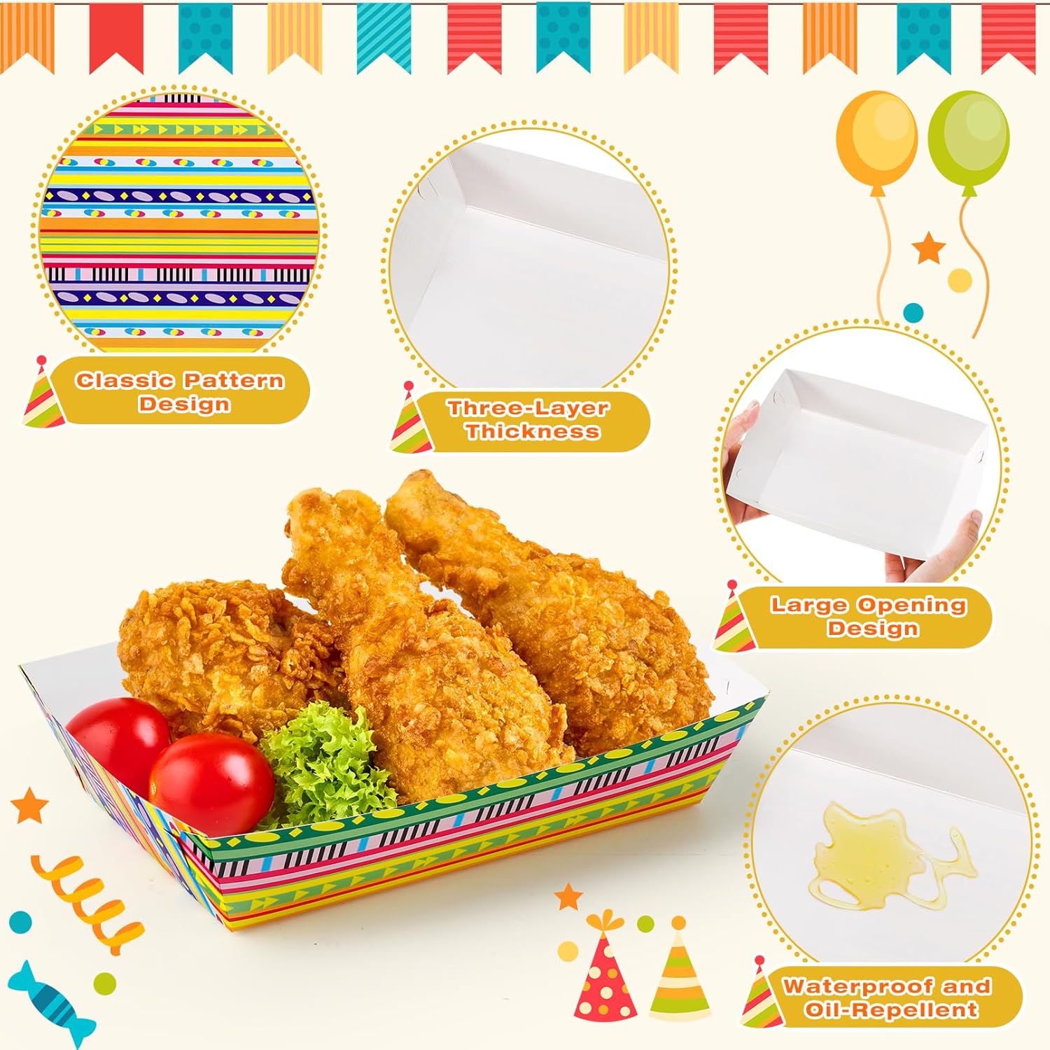 - Wide Application: This paper food boats are suitable for Christmas, carnivals, weddings, birthday parties, picnics, or other indoor and outdoor events. It is also an ideal choice for Mexican-themed party decorations and Cinco de Mayo party supplies