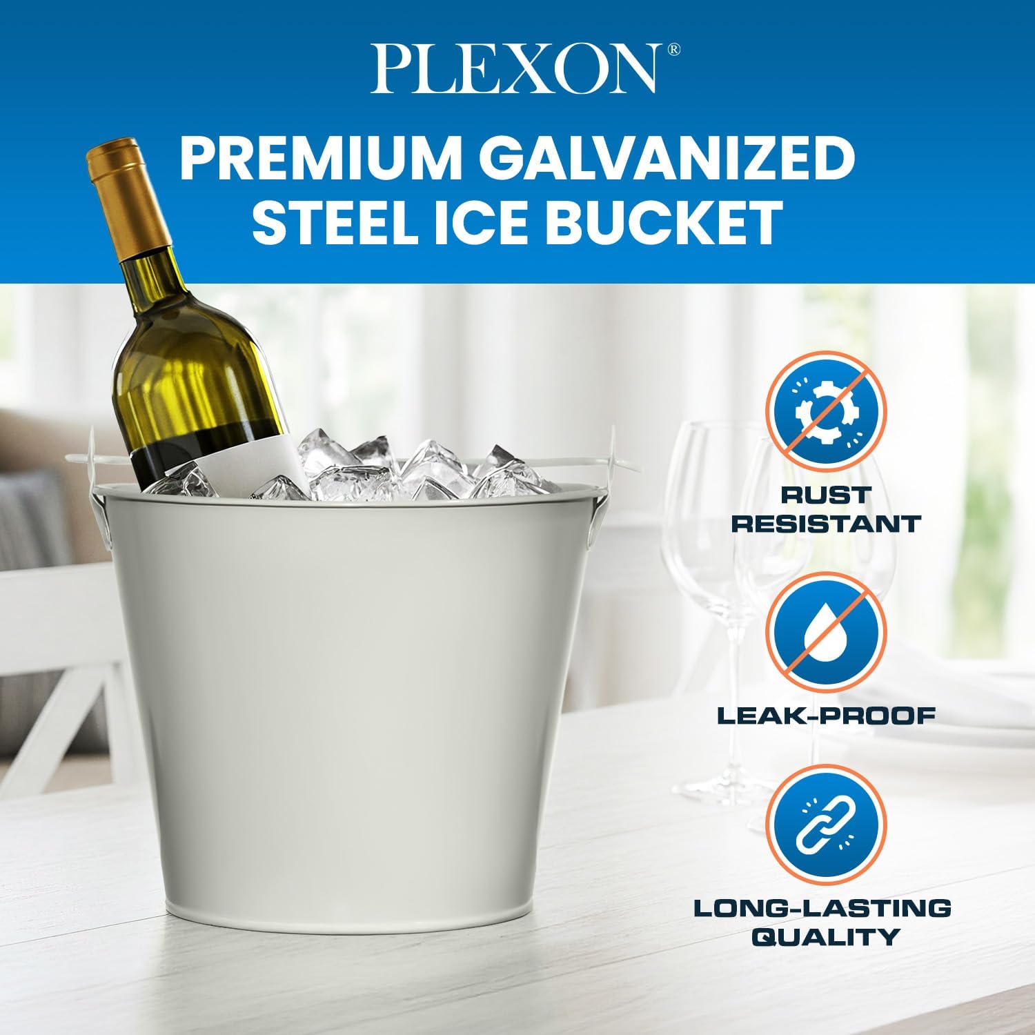 - Keep your drinks ice-cold for hours – The PLEXON galvanized metal ice bucket ensures long-lasting cold temperatures, making it perfect for serving chilled wine, beer, and cocktails. An essential ice bucket for parties, bars, and outdoor gatherings.