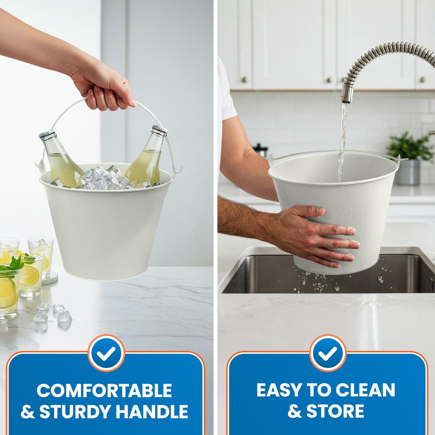 - Easy to carry and transport – The built-in handle makes this small metal bucket easy to move, even when full. Whether using it as a champagne cooler bucket, metal pail bucket, or party bucket for drinks, portability is a breeze.