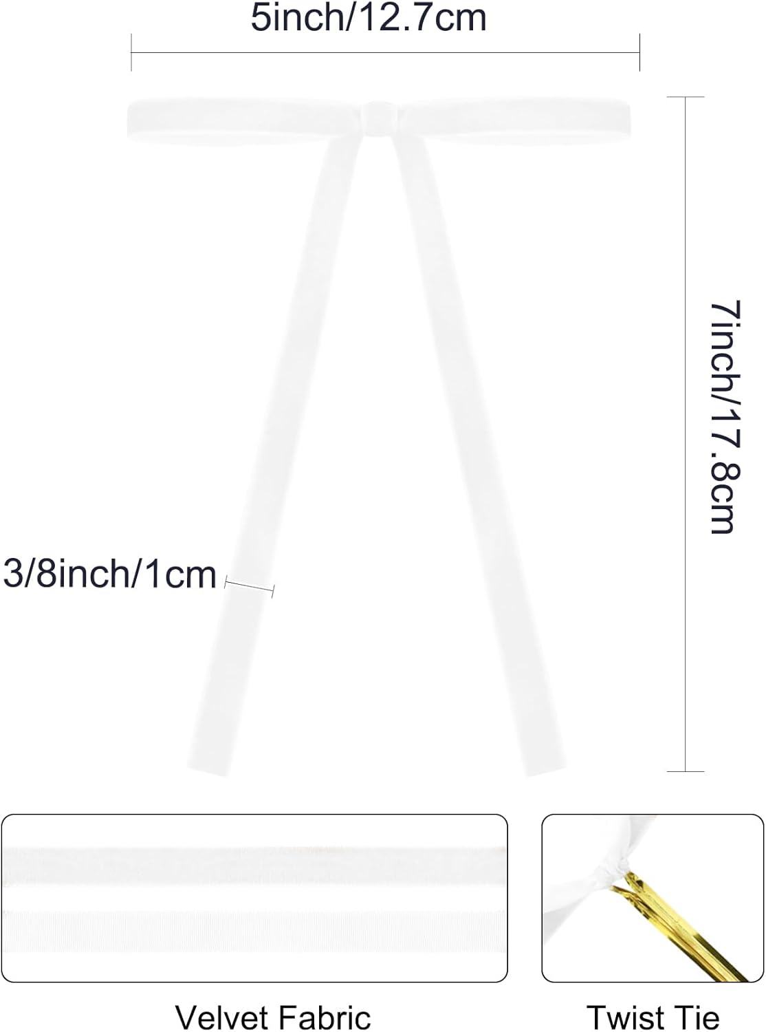 SIMISI RIBBON 24Pcs White Christmas Velvet Ribbon Bows Decorations Xmas Ornaments Vintage Decor for Tree, Wreath, Garland (3/8'' Width, 5 * 7 inch)