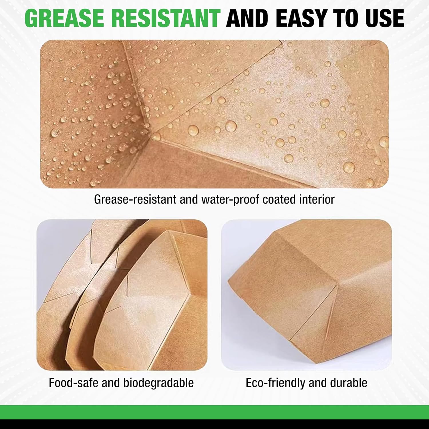 - Eco-Friendly & Recyclable: Made from biodegradable kraft paper, our food trays are a sustainable alternative to plastic and foam—easy to recycle after use.