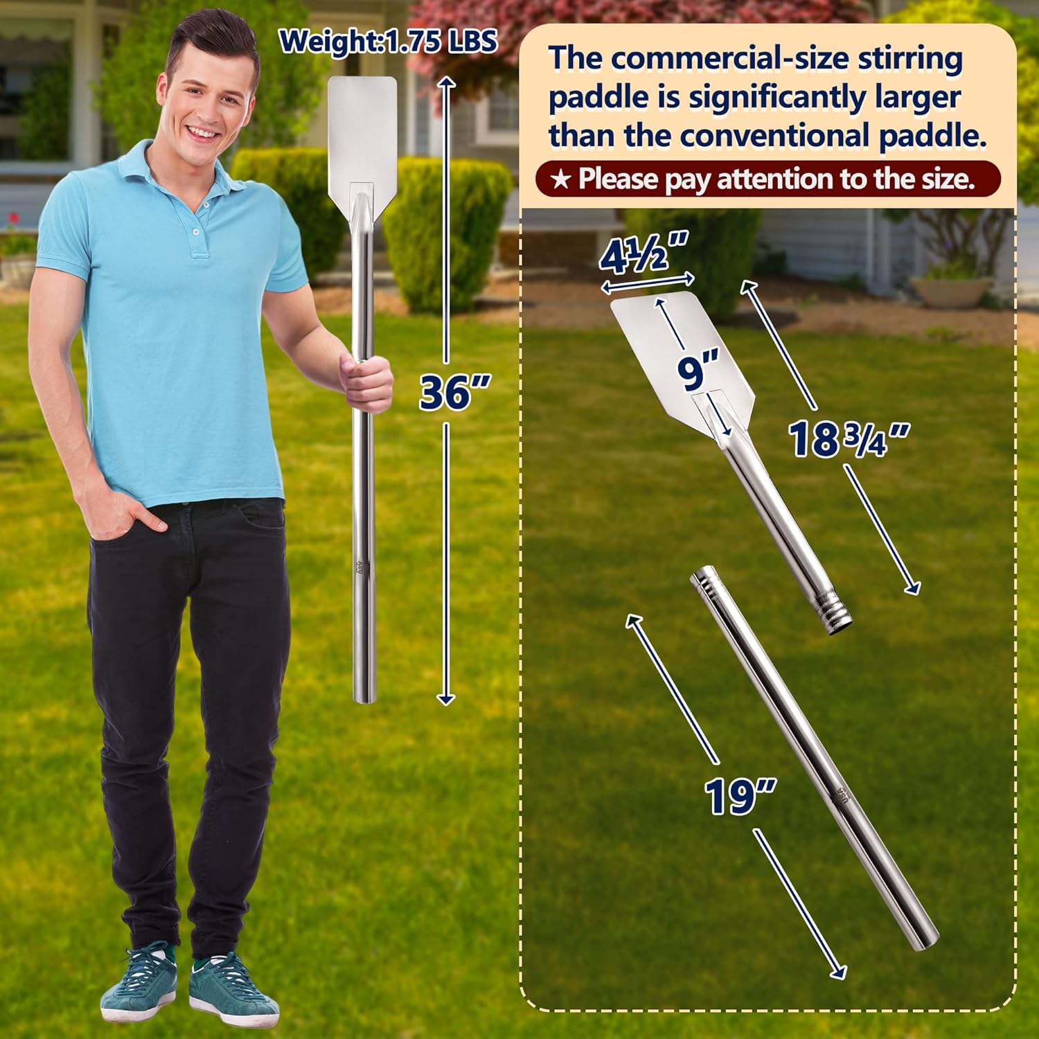 - 【Premium 8-Piece Stainless Steel Set for Heavy-Duty Cooking】This complete cooking set includes the 52qt pot, lid, straining basket, steamer insert rack, divider, steamer pipe, lift hook, and a 36" mixing paddle. Crafted from premium stainless steel, it's built to last a lifetime, outperforming and outlasting ordinary aluminum pots.
