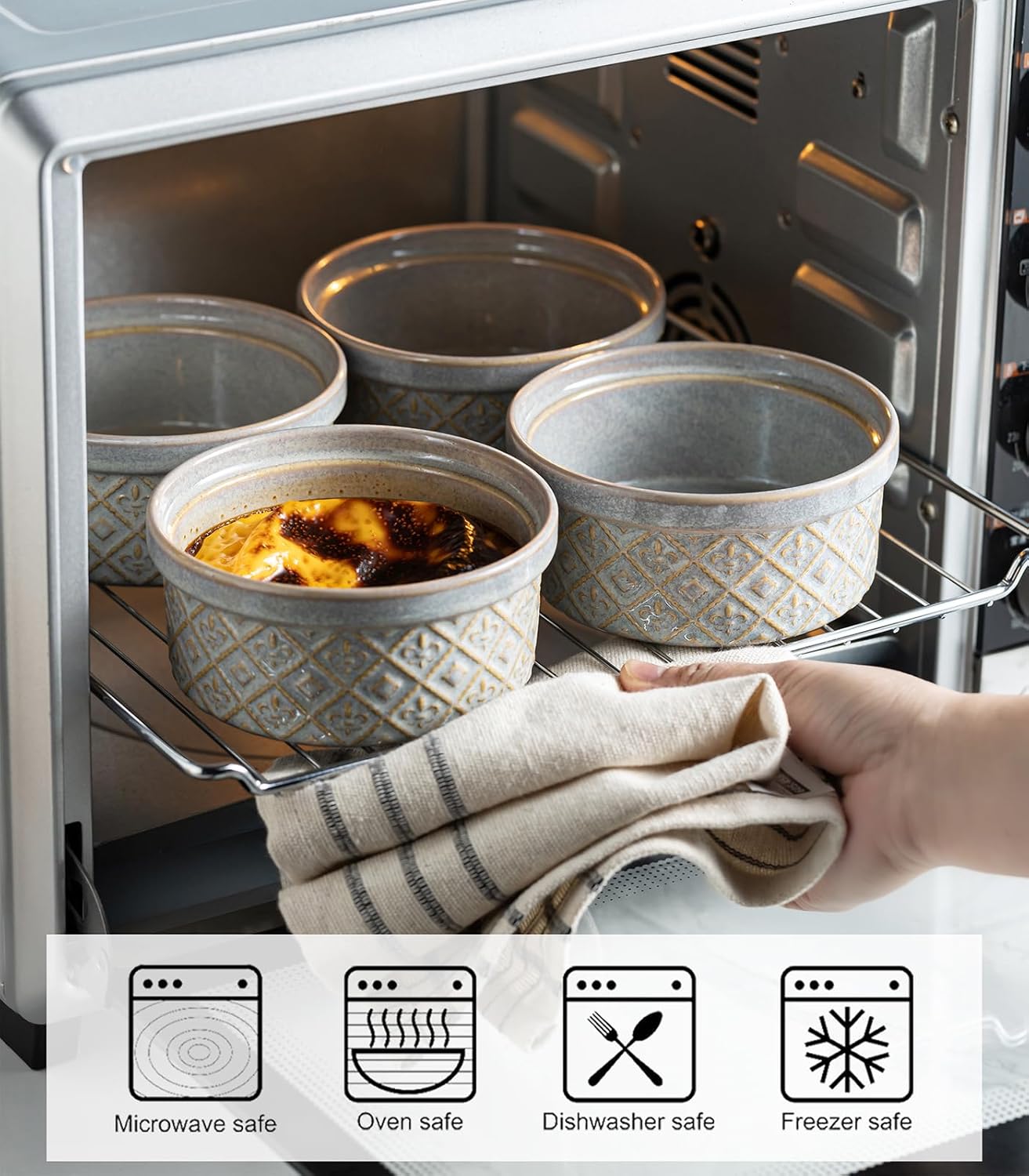 - Versatile Ramekin Bowls with Covers: At home, you can use these bowls as soup bowls, fruit bowls, dessert bowls, snack bowls, mixing bowls, noodle bowls, and containers for reheating leftovers. Beyond the kitchen, they’re ideal for outdoor gatherings like picnics or barbecues, and their portability with secure lids makes them easy to take on trips, ensuring you can enjoy your favorite foods wherever you go