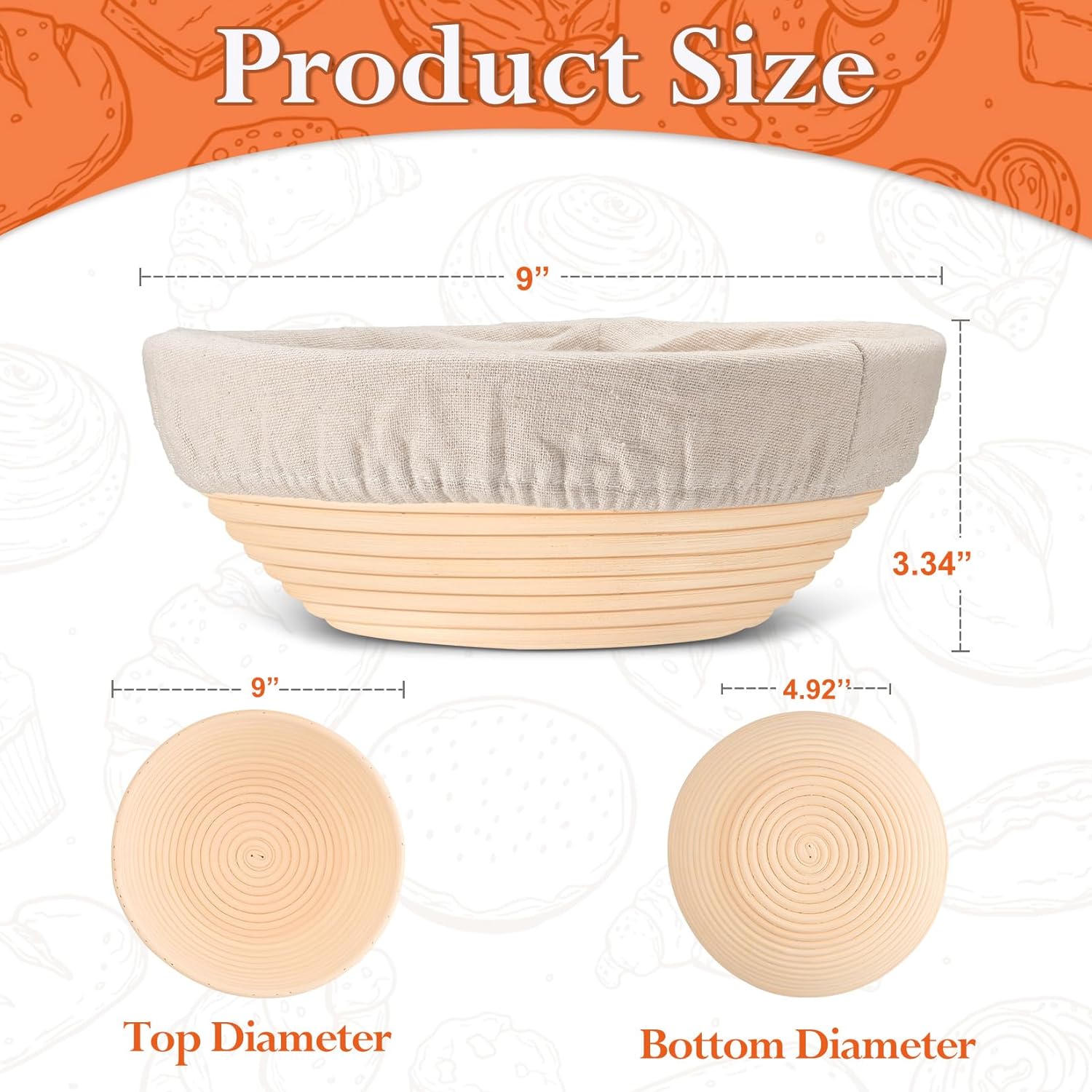 - 【Proofing Dough Helper】 As the structure of the basket helps the dough to form uniform pores during the fermentation process, Rattan proofing basket set can better keep the shape of the dough compared to regular bowls or silicone baskets, Great to prevent the dough from deformation, The cloth liner not only helps to create a breathable environment within the proofing space, But also effective in avoiding the dough from sticking