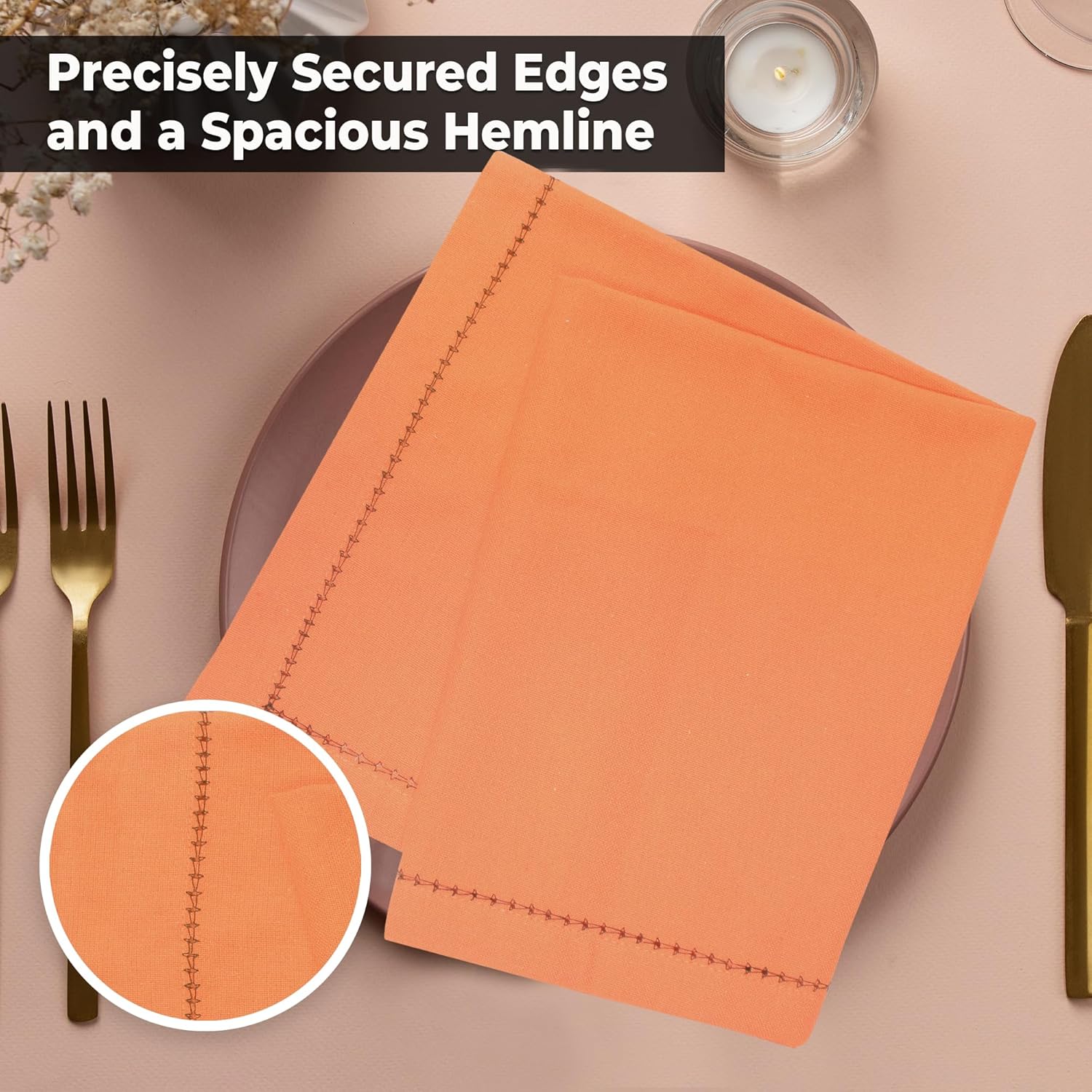 Urban Villa Cloth Napkins Set of 12 20"x20" 100% Cotton Hemstitch Napkins Cloth Washable Durable Reusable Absorbent Table Dinner Napkins Cloth for Hotel Lunch Restaurant Weddings Parties–Orange Black