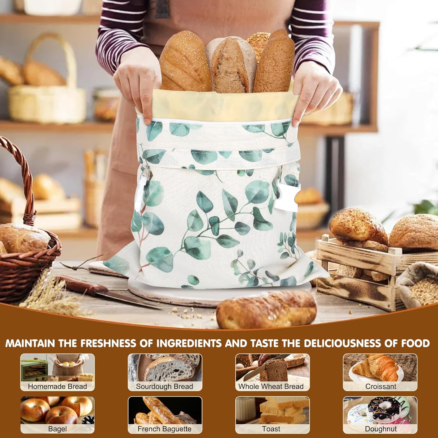 - Zipper Design: Our bags are designed with a double-layer locking closure, first put the bread into the bag, zip up the zipper to help insulate the air, then fold the closure down twice and fasten the locks on both sides to complete the seal.