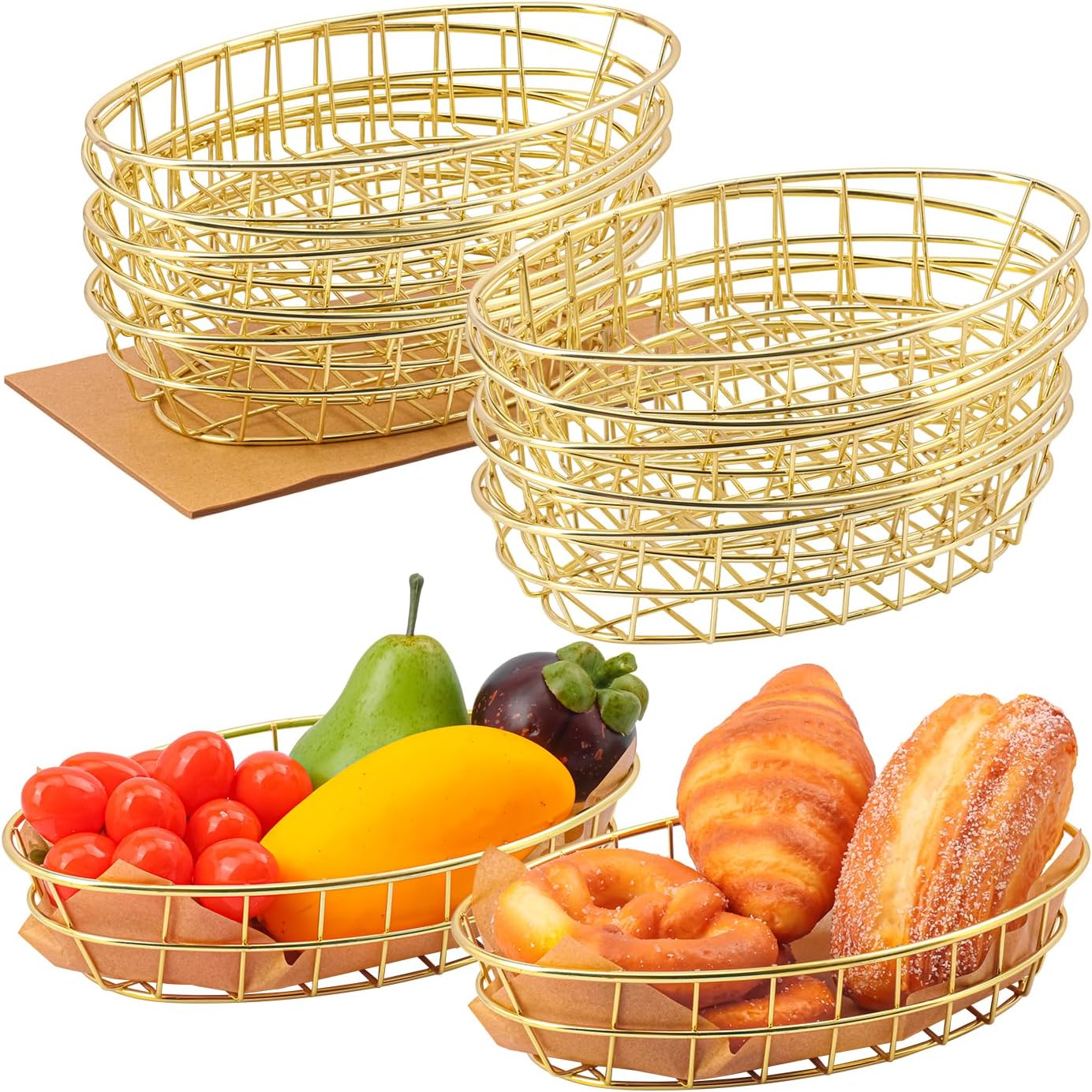 - 【Versatile and Multi-Functional】: These Golden wire bread baskets are not just for serving bread. They can be used as fruit bowls, storage for towels, or even as decorative centerpieces on your dining table or kitchen counter. Their versatile design makes them suitable for both indoor and outdoor use.