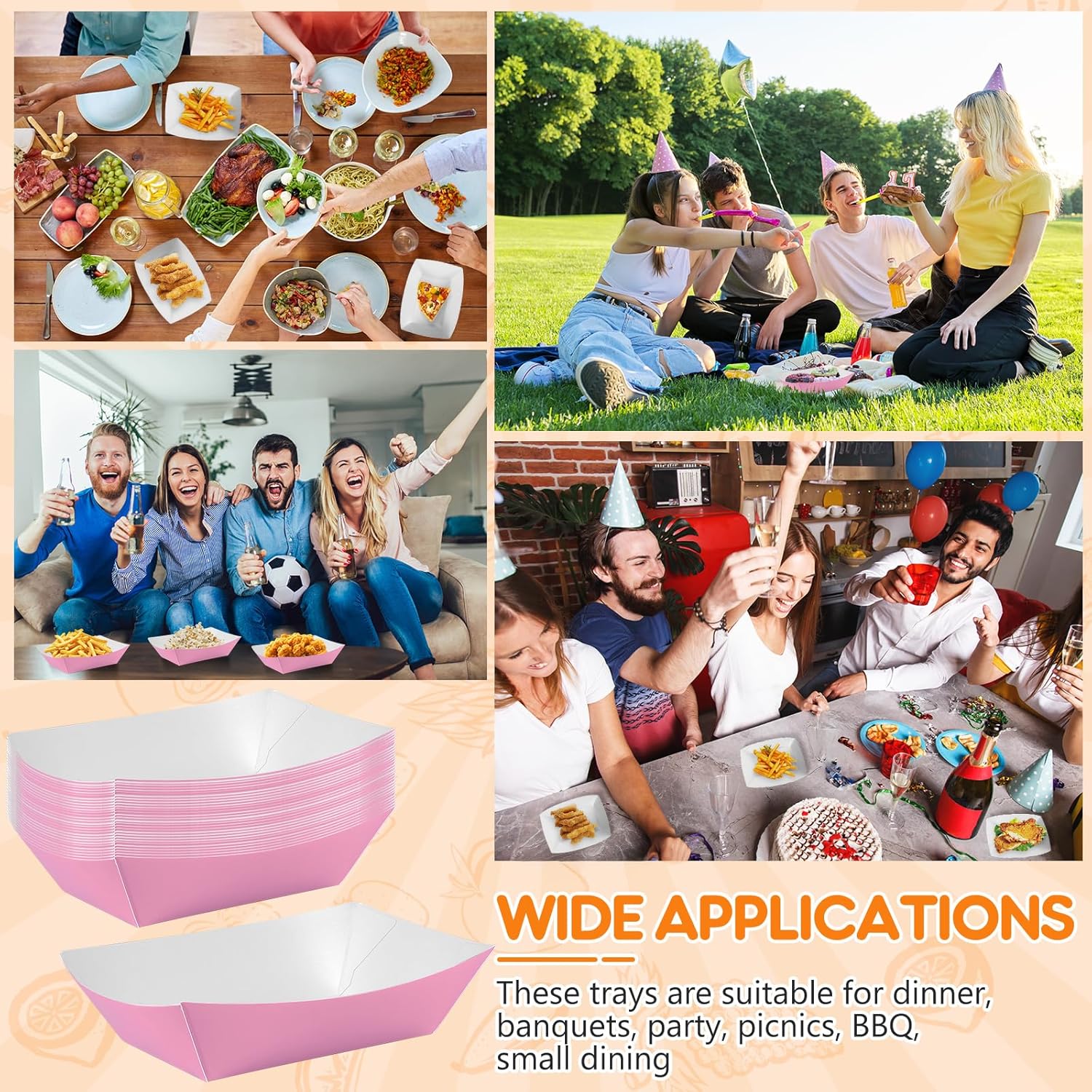 100 Pcs Pink Paper Food Tray Sturdy Disposable Food Boats Nacho Plates Disposable Serving Snack Trays for Catering, Party Birthday Supplies, and Food Service (Pink)