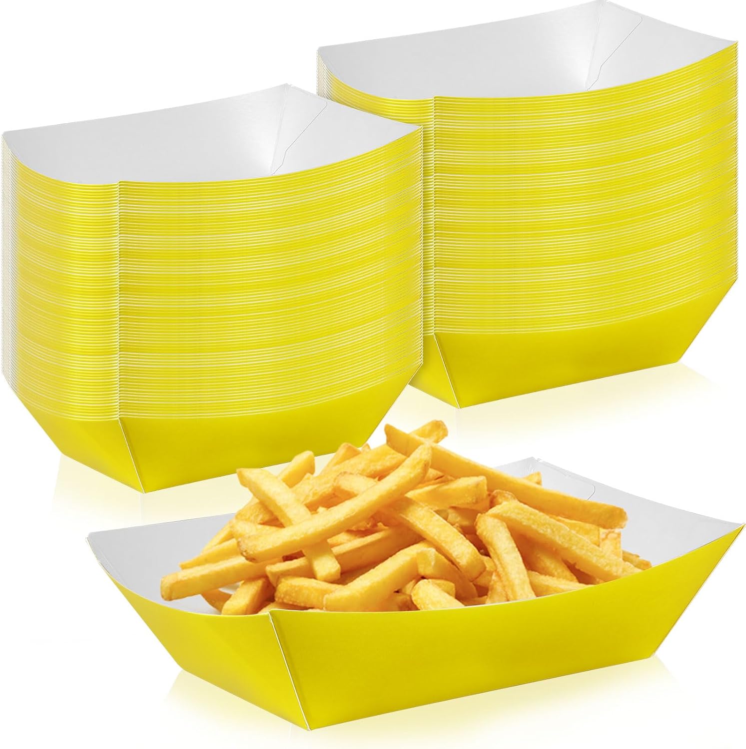 100 Pcs Yellow Paper Food Tray Sturdy Disposable Food Boats Nacho Plates Disposable Serving Snack Trays for Catering, Party Birthday Supplies, and Food Service (Yellow)