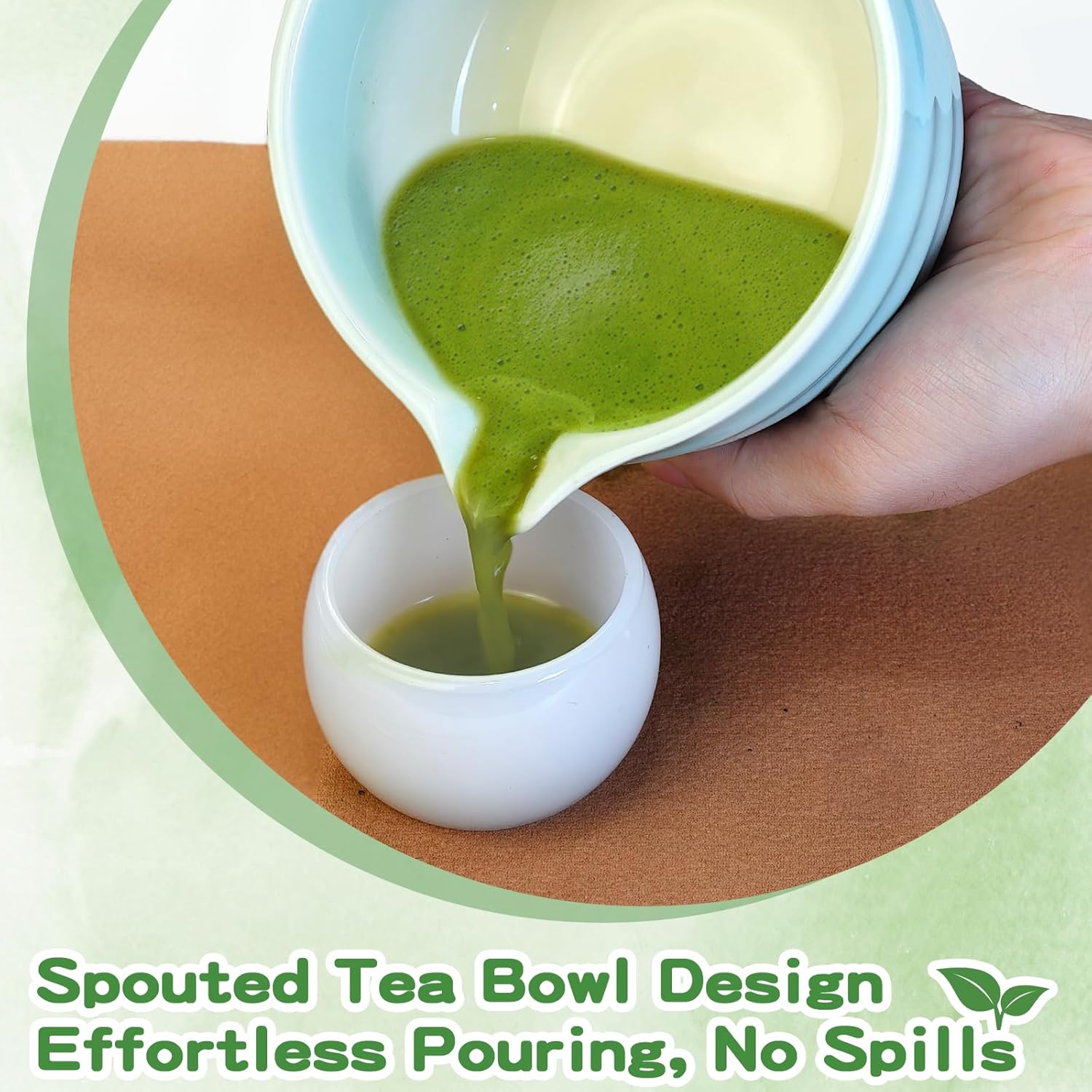 - Matcha Bowl with Spout Design:Our ceramic matcha bowl (510ml/18oz) feature a unique spout design for precise pouring. Enjoy delightful and clean matcha experience every time