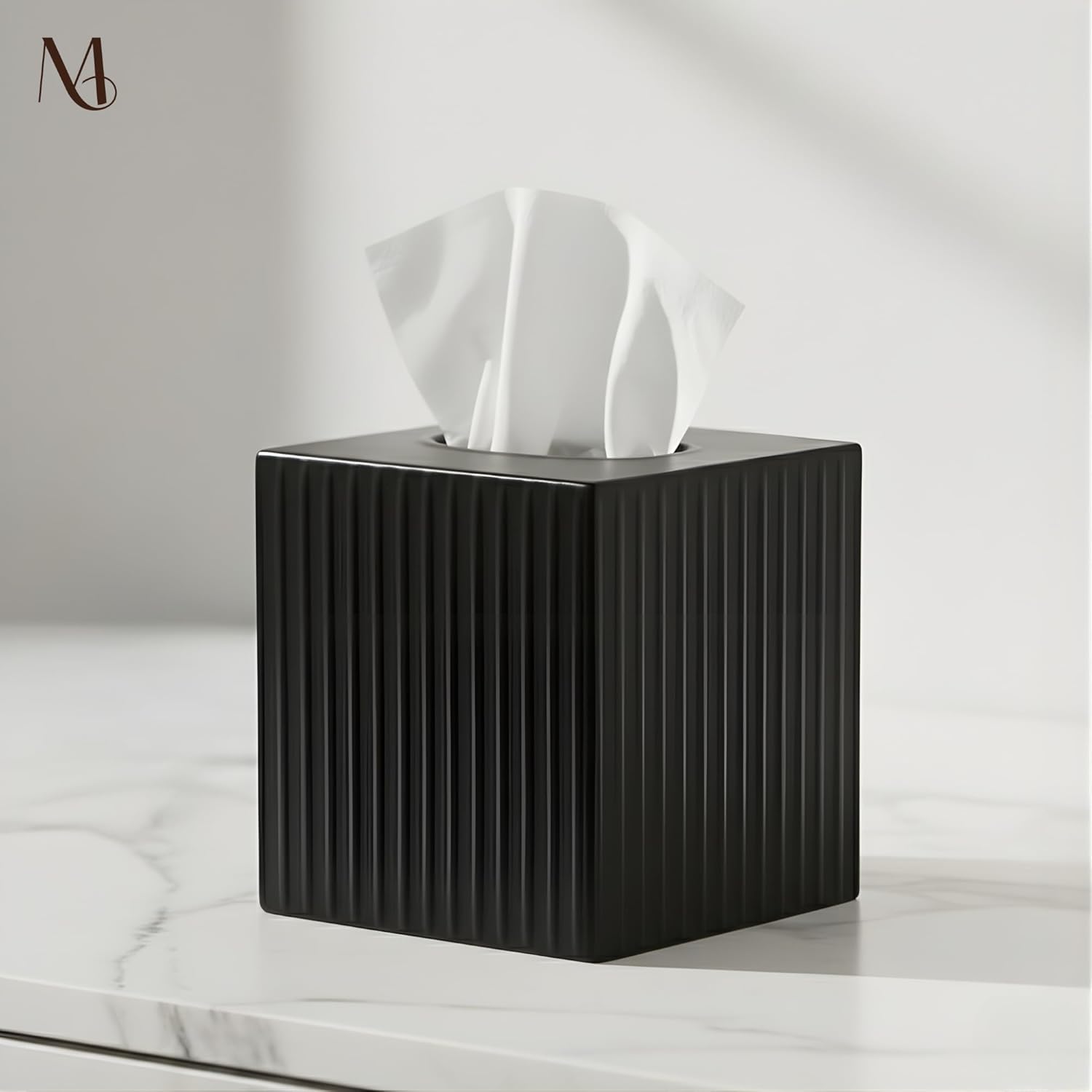 - STYLISH & PERFECTLY SIZED: Measuring 5" x 5" x 5.25", this modern tissue box cover delivers the perfect blend of elegance and functionality. The sleek design of this handcrafted ridge embossed decorative tissue box cover complements any room—whether you're decorating a modern bathroom, cozy bedroom, or organized office. Use it as a decorative tissue box holder to enhance countertops, vanities, nightstands, desks, or side tables.