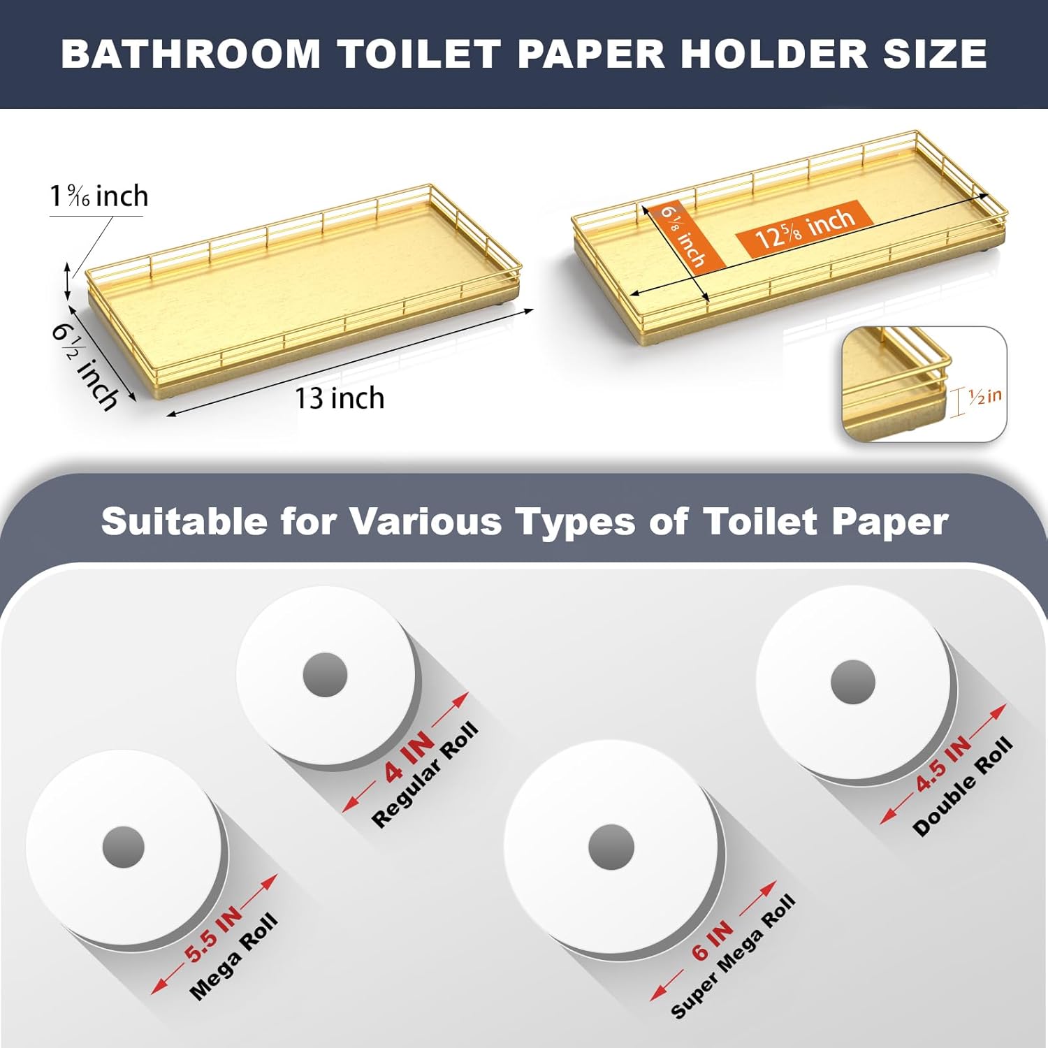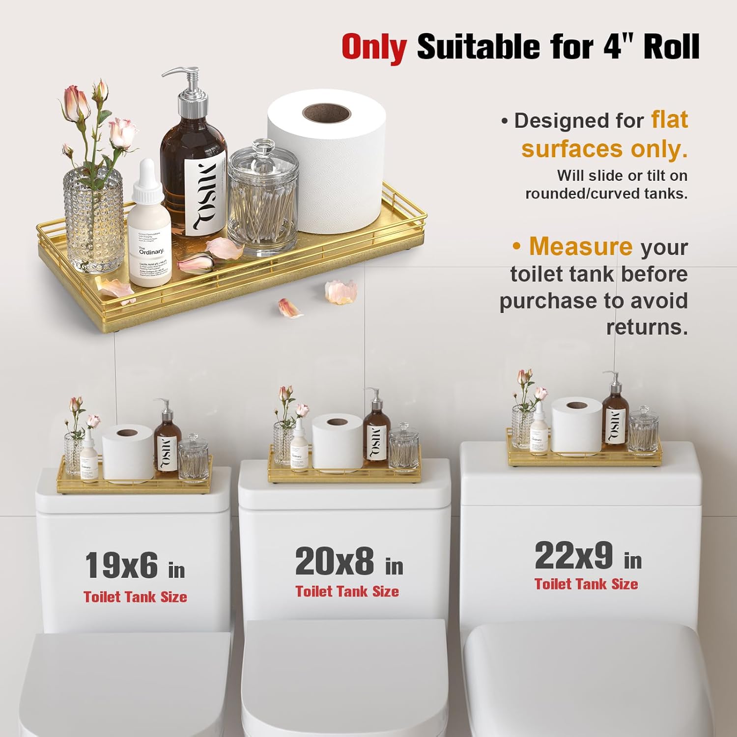 - Versatile Functionality: Elevate your daily routine with our toilet tank basket tray; Neatly arrange bathroom essentials such as toilet paper, lotions, scented candles and potted plants, keeping your countertop tidy; Add a touch of elegance to your dresser by using the bathroom vanity tray to display perfumes, jewelry, and cosmetics; Impress your guests with neatly arranged hand towels and toiletries organized on the large toilet tray for bathroom counter or use it as a kitchen soap tray