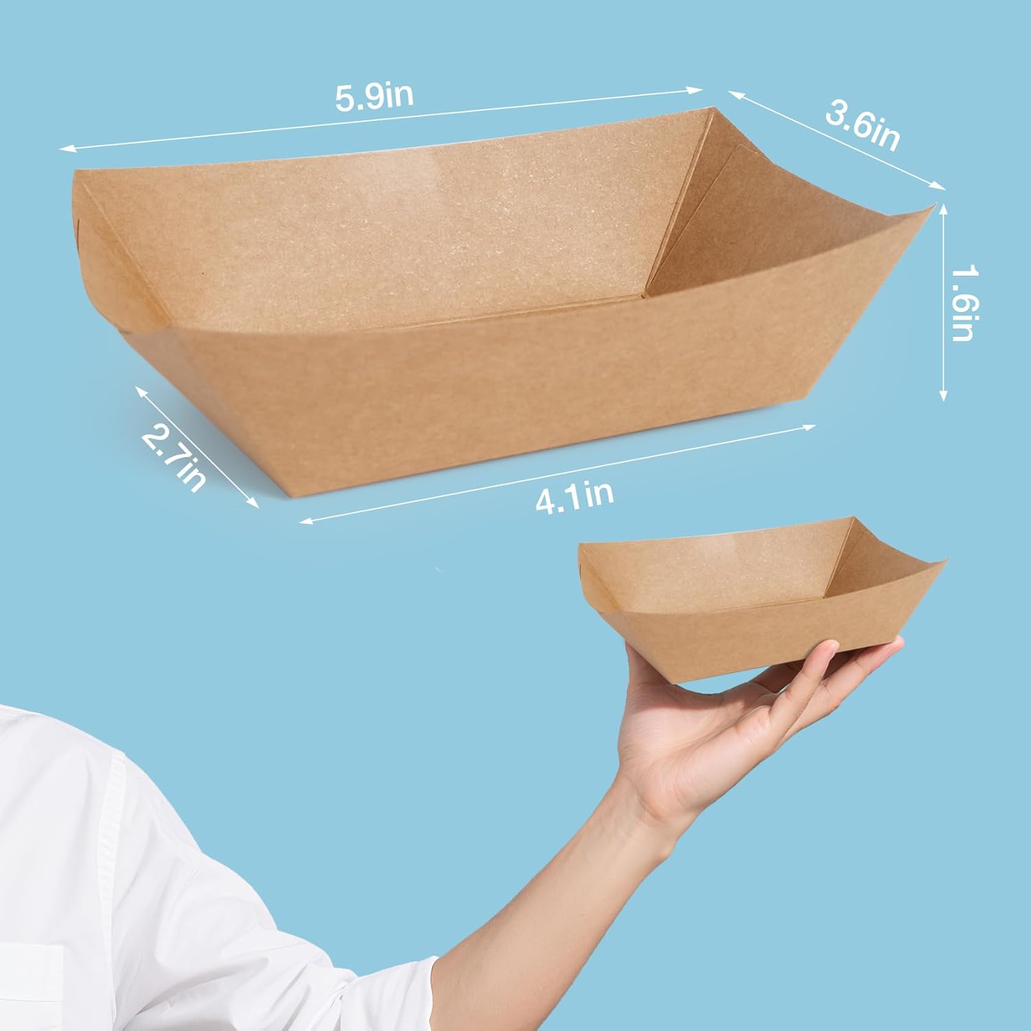 - Quality Material:Food serving boats are made of high quality food grade brown paper,The film inside is specifically designed to resist grease and is leak-proof, better choice compared to plastic and foam trays