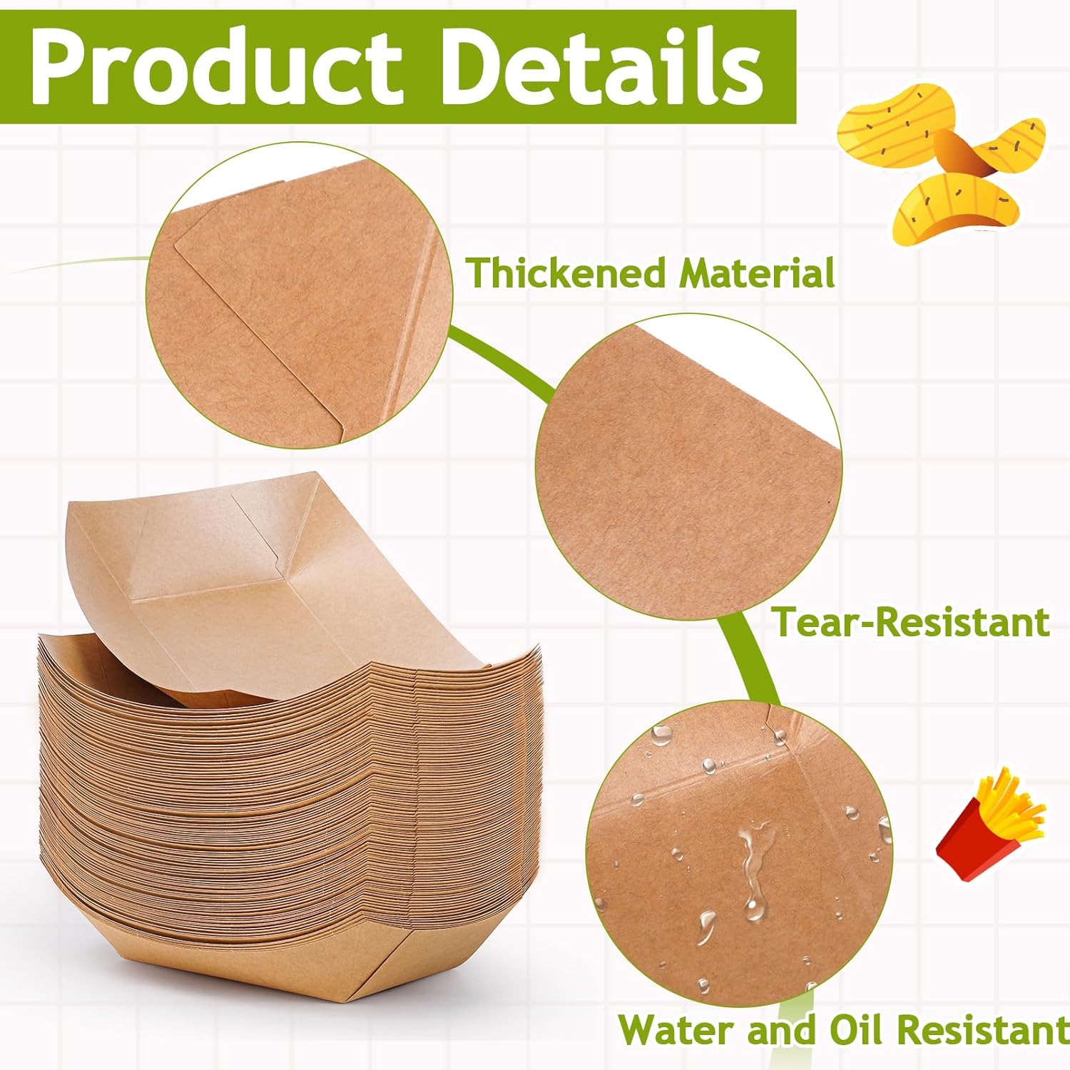 - Wide Range of Uses: These kraft paper food trays are ideal for holding cookies, fries, chips, popcorn, tortillas, hot dogs, desserts, fried snacks, and other foods.