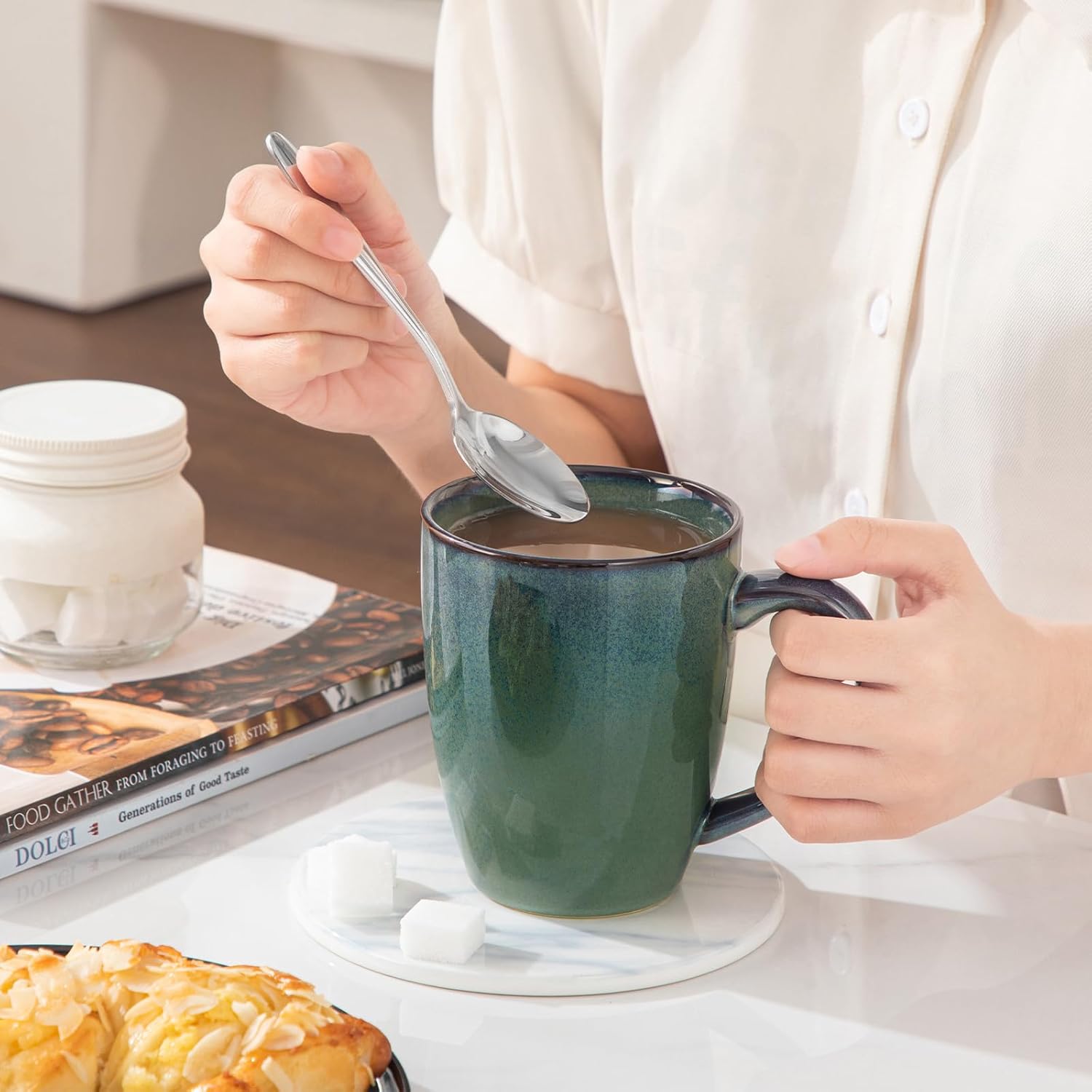 - 【Mug Set with Unique Reactive Glaze】Includes 6 mugs in 16oz sizes, each featuring a stunning green reactive glaze—no two mugs are exactly alike. A bold and artistic touch for your drinkware collection.