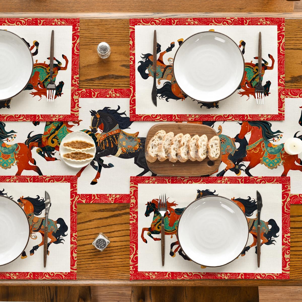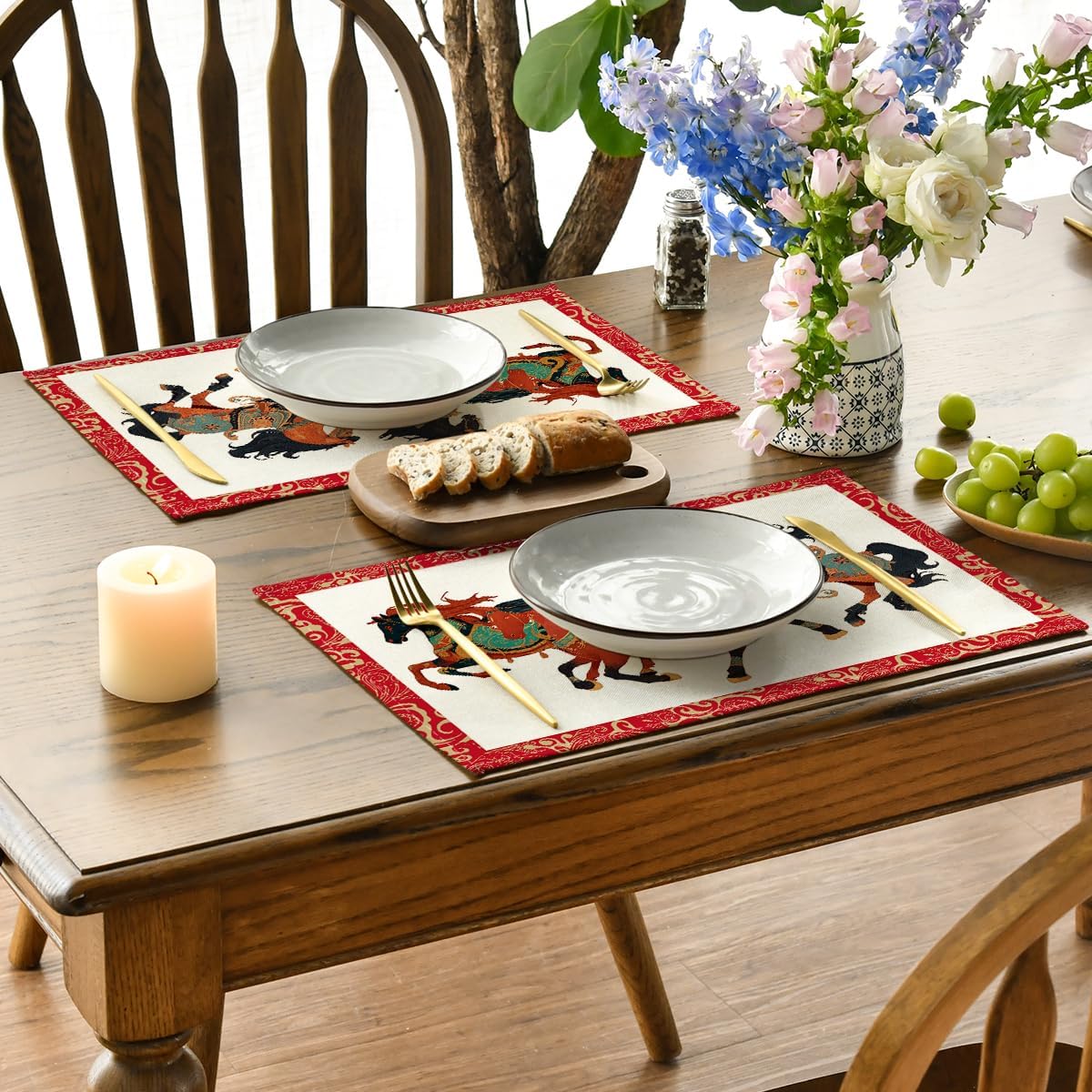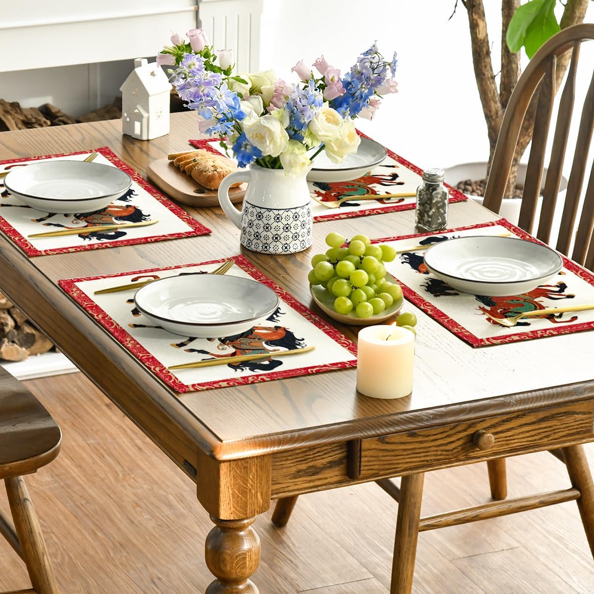 Artoid Mode Zodiac Horse Happy 2026 Chinese New Year Placemats Set of 4, 12x18 Inch Seasonal Lunar Winter Table Mats for Party Kitchen Dining Decoration