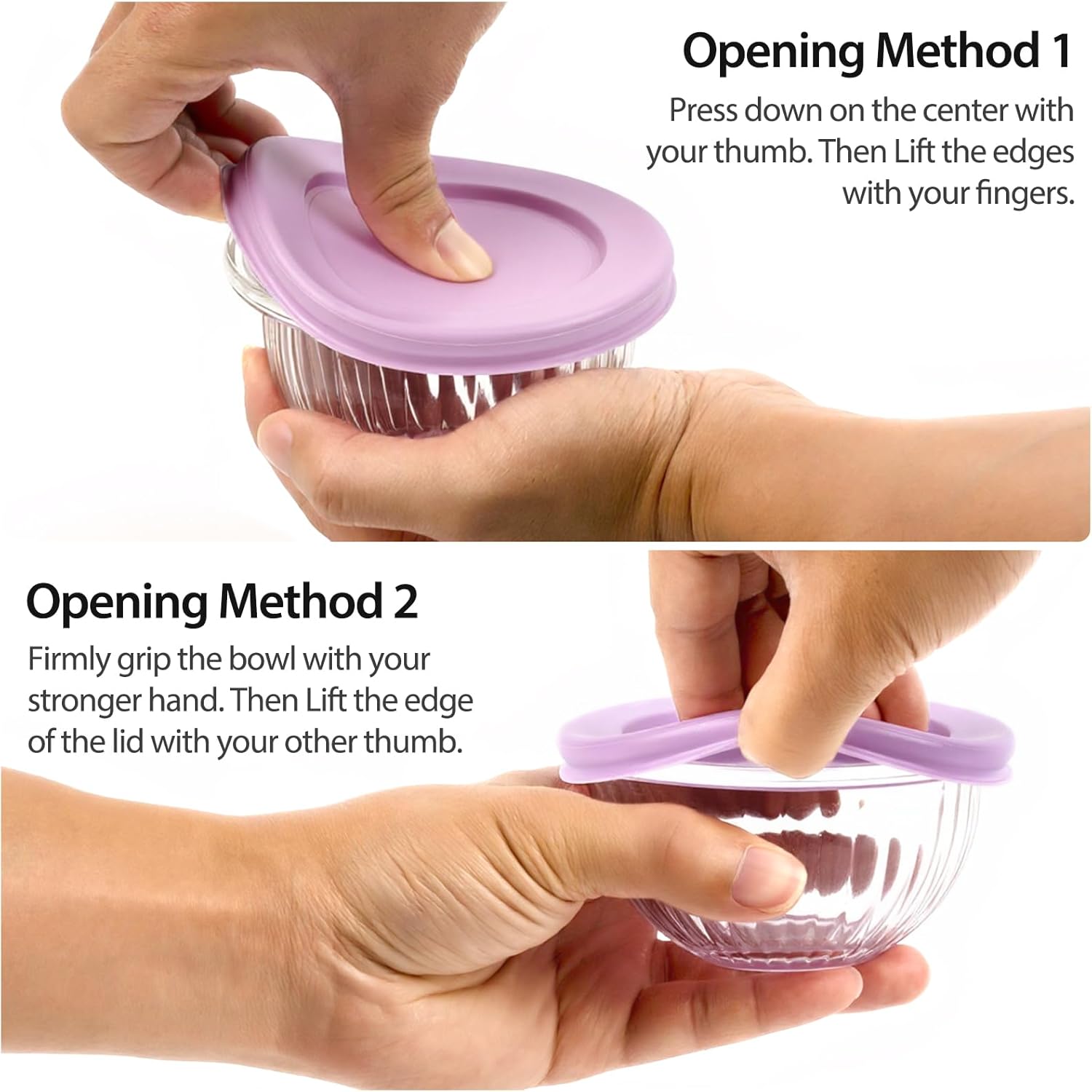 - Warm Tips: For best results, hand wash the lids to preserve the seal. To open easily, press down firmly on the center of the lid with your thumb while lifting the edges