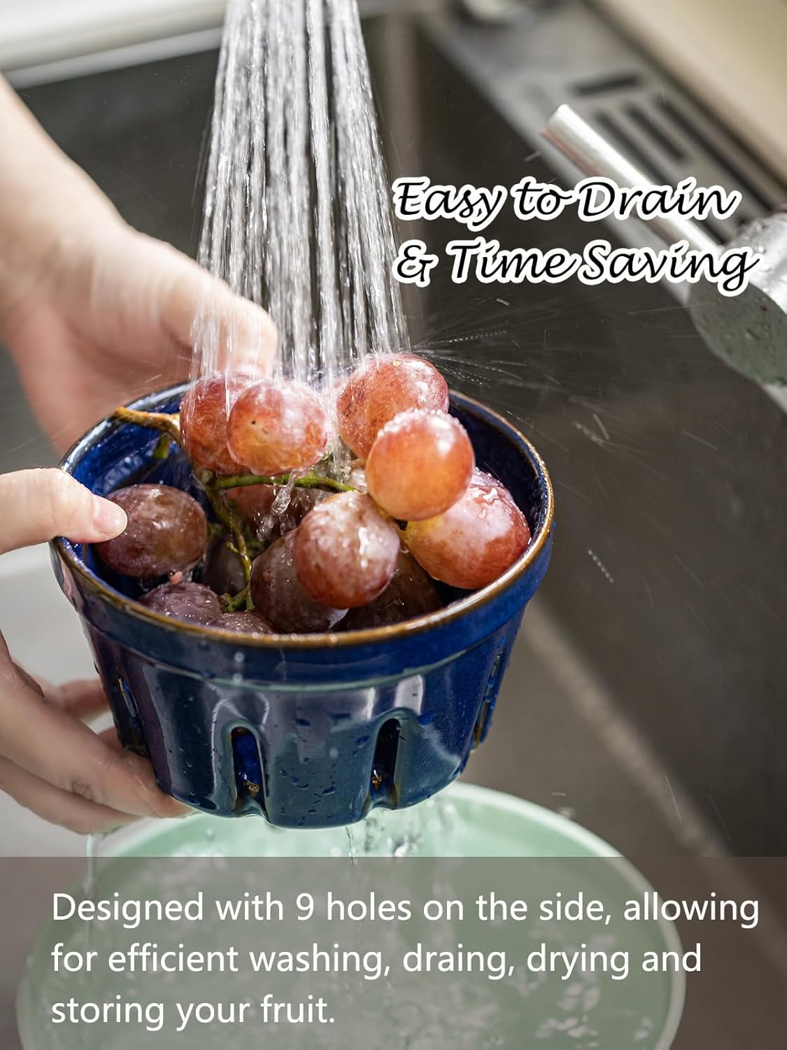 - MORE THAN A BERRY BASKET: Our round fruit baskets combine functionality with elegant design. As a ceramic colander for washing fruit, they are perfect for holding a variety of berries, and you can also use them to display snacks, candy, office utensils, toiletries, and even as decorative flower pots. A multipurpose kitchen & home essential.