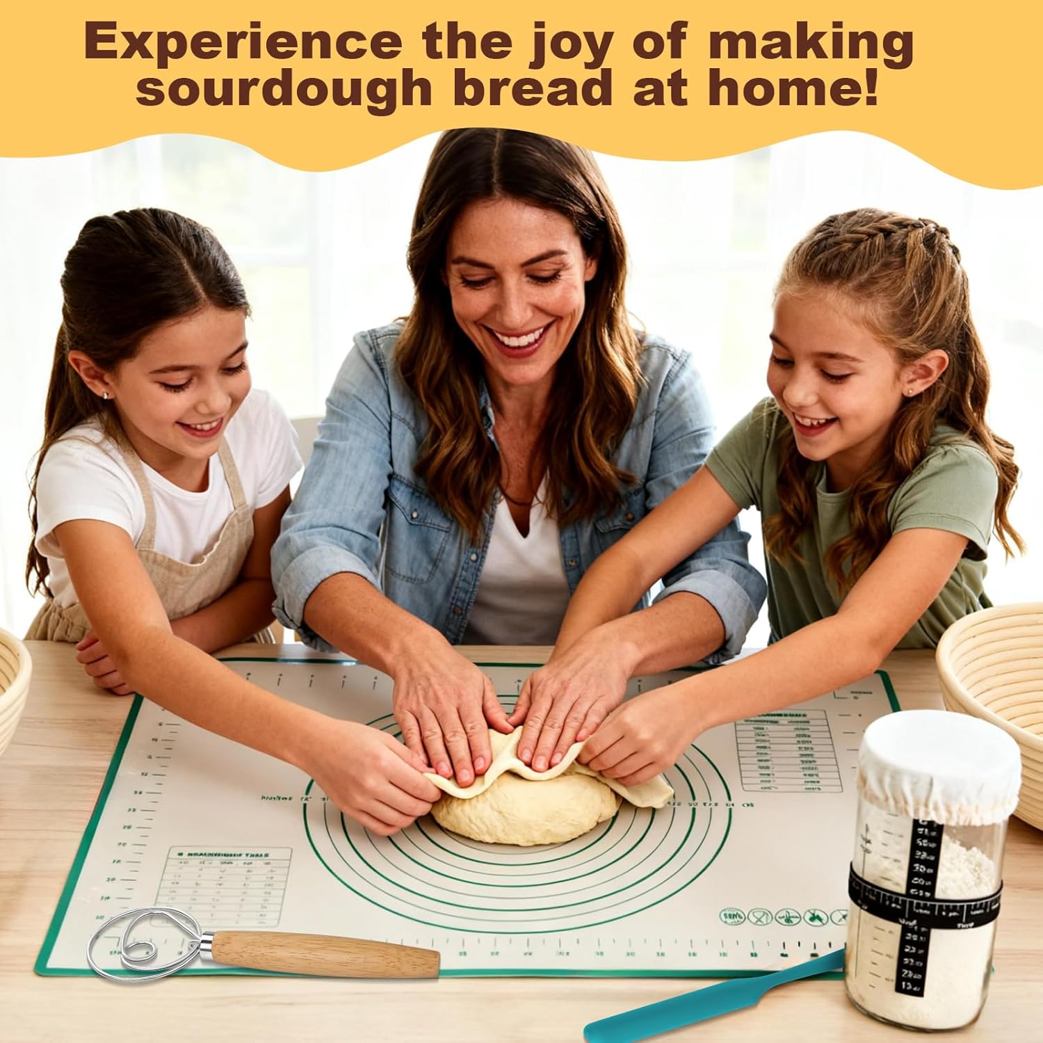 Upgraded All-Inclusive 𝗣𝗥𝗘𝗠𝗜𝗨𝗠 Sourdough Starter Kit with Pot, Sourdough Bread Baking Supplies, 34 Oz Starter Jar, 2 Banneton Bread Proofing Baskets, Scraper, Scale, Lame, Sour Dough Tools
