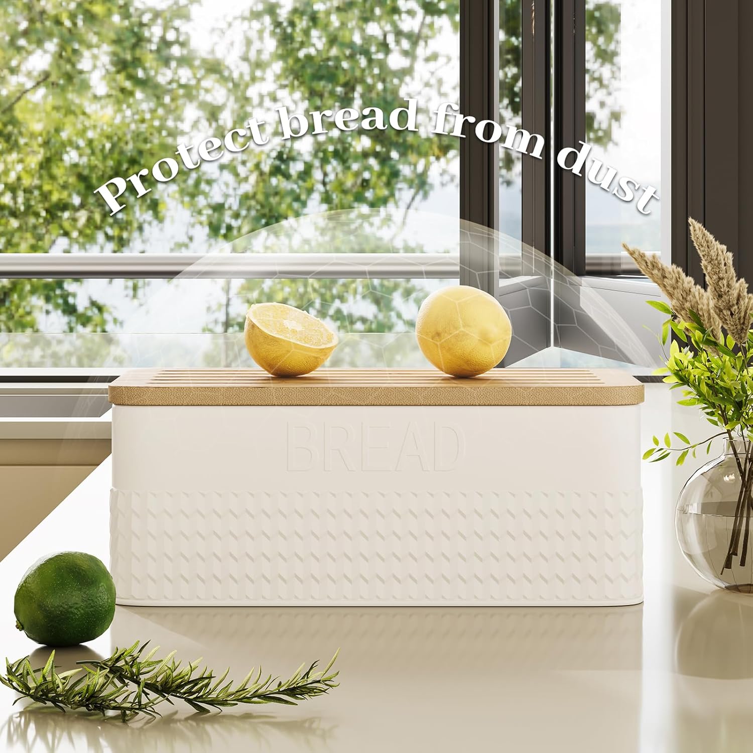 - 【Thick Bamboo Cutting Board】: Dust-proof lid doubles as a cutting board with grooves to collect crumbs and features anti-slip feet