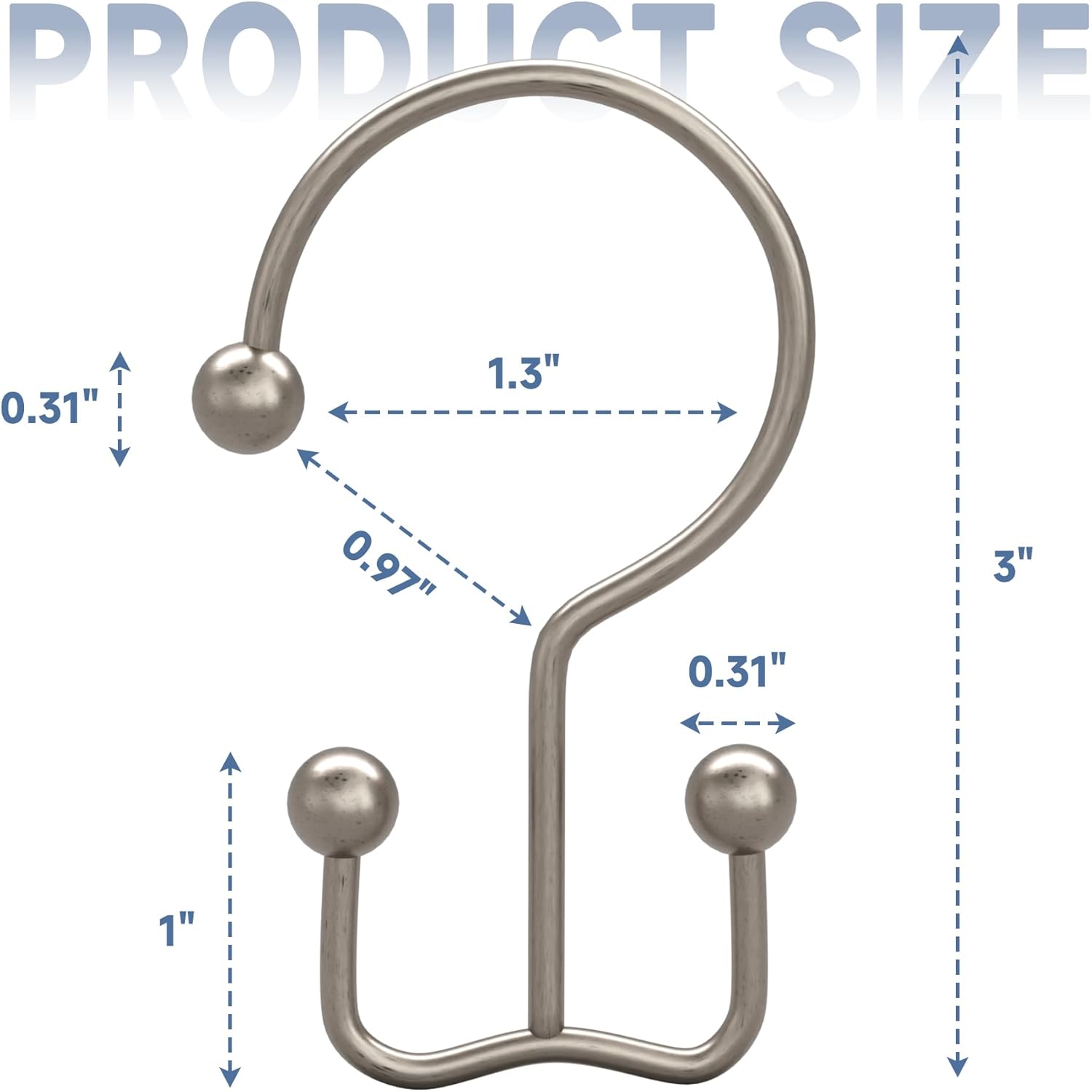 - High quality metal - These double glided shower curtain rings are made of high quality and selected metal. These shower curtain hooks are 3 inches long and fits most standard size shower curtain rods (less than or equal to 1.3 inches).