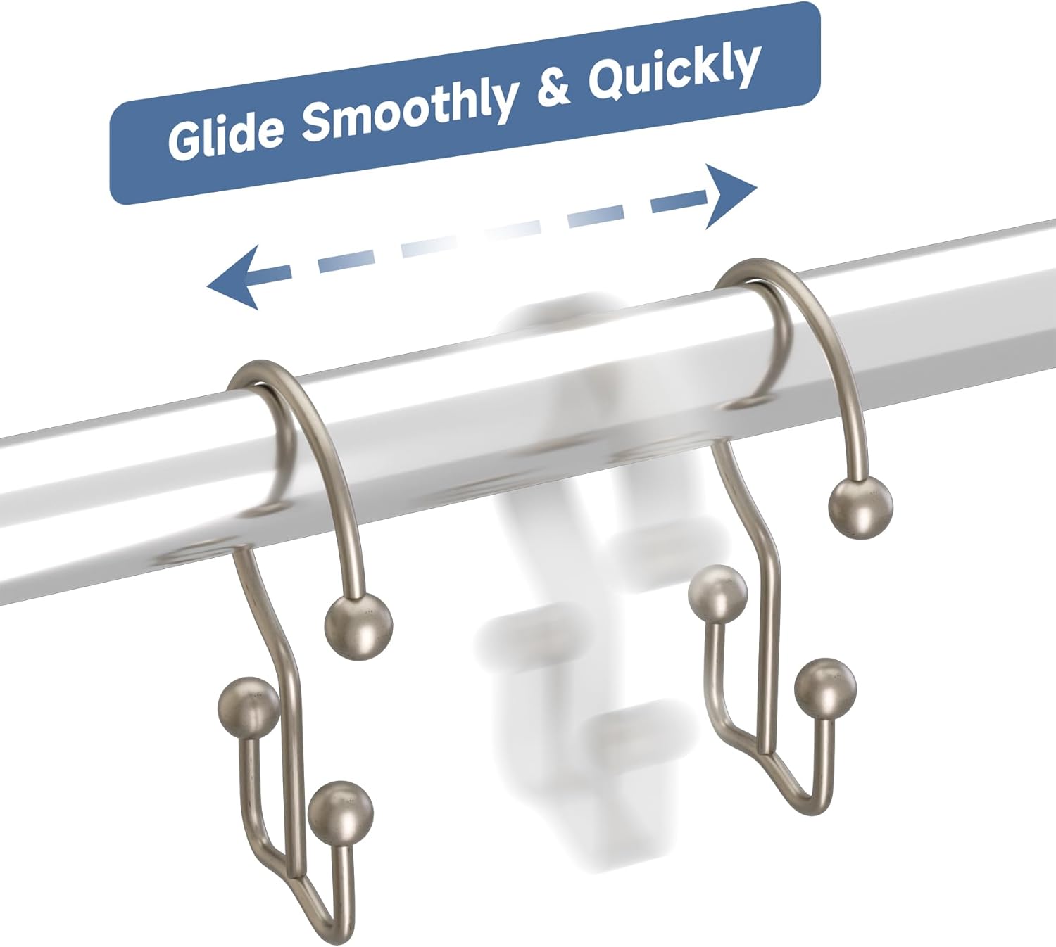 - Double hooks design - The double roller glide shower curtain hooks are strong enough to hold up shower curtain and shower liner.