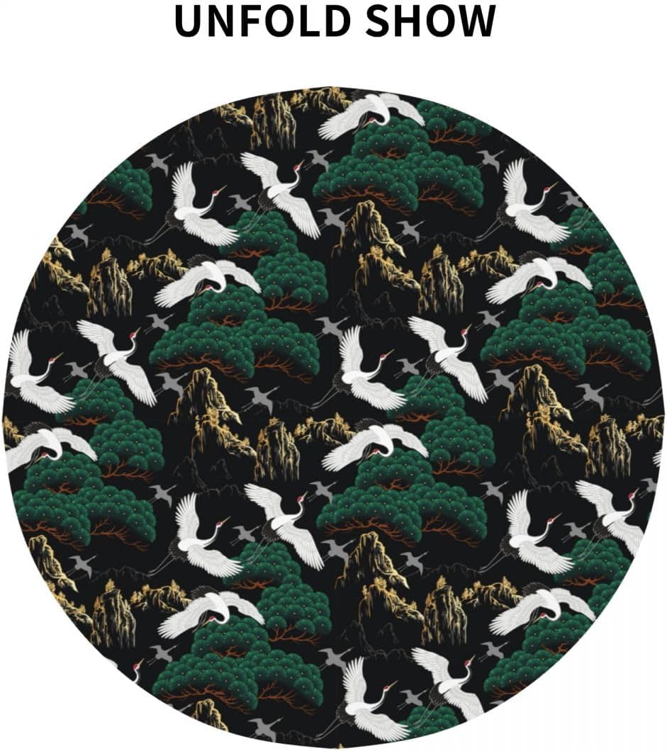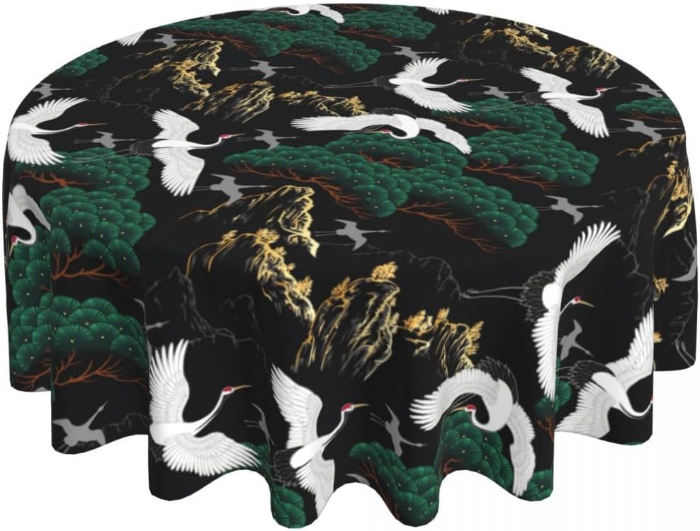 Japanese Tablecloth, Traditional Oriental Crane Vintage Chinese Landscape Luxury Farmhouse Water Resisitant Table Cover for Dining Kitchen Living Room Home Party Holiday Decor 60 inch Round