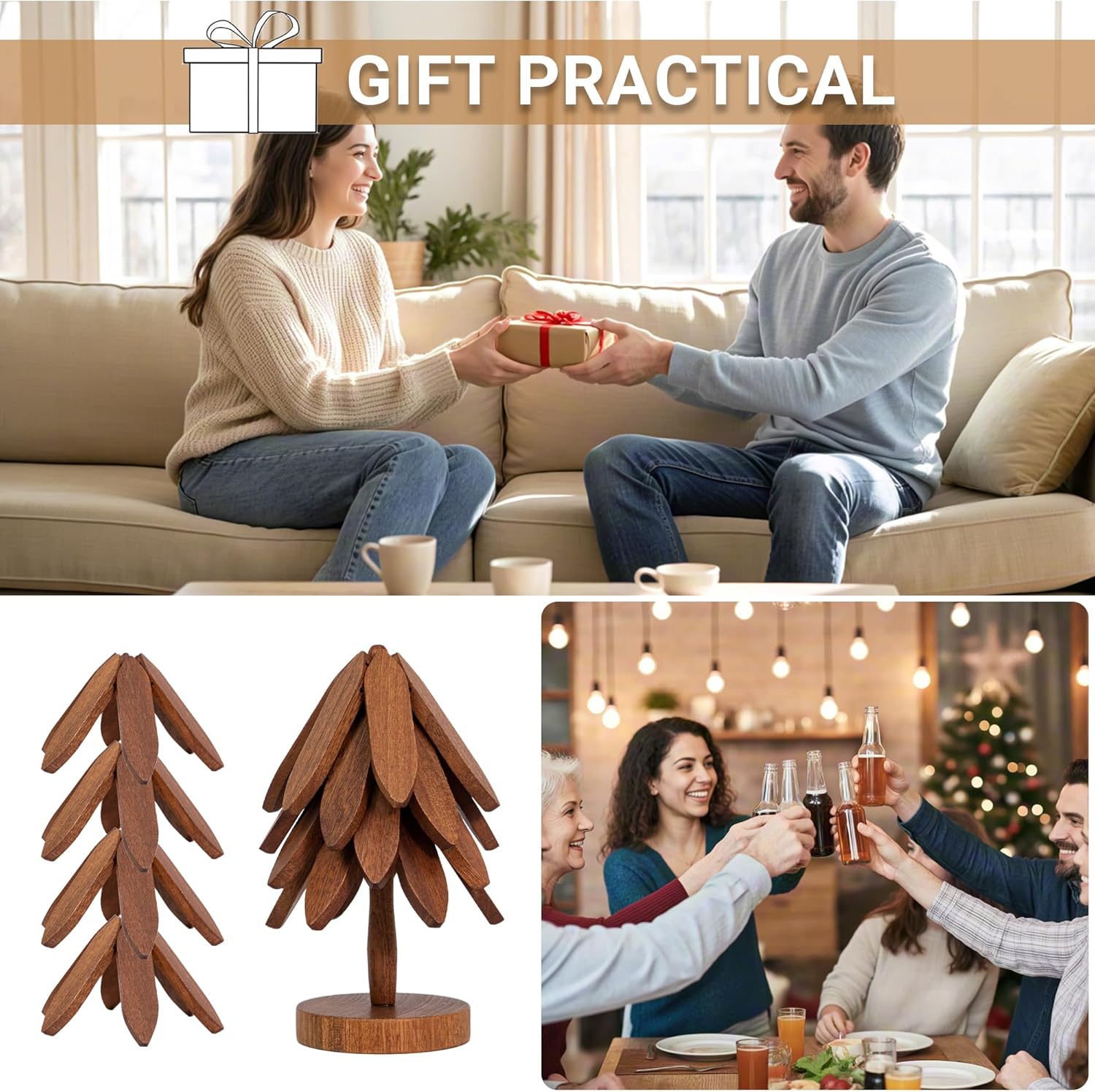 Yuoyar Trivets, Wooden Tree-Shaped Sapeli Wood Drink Trivets Set for Coffee Table, Kitchen Table Decor