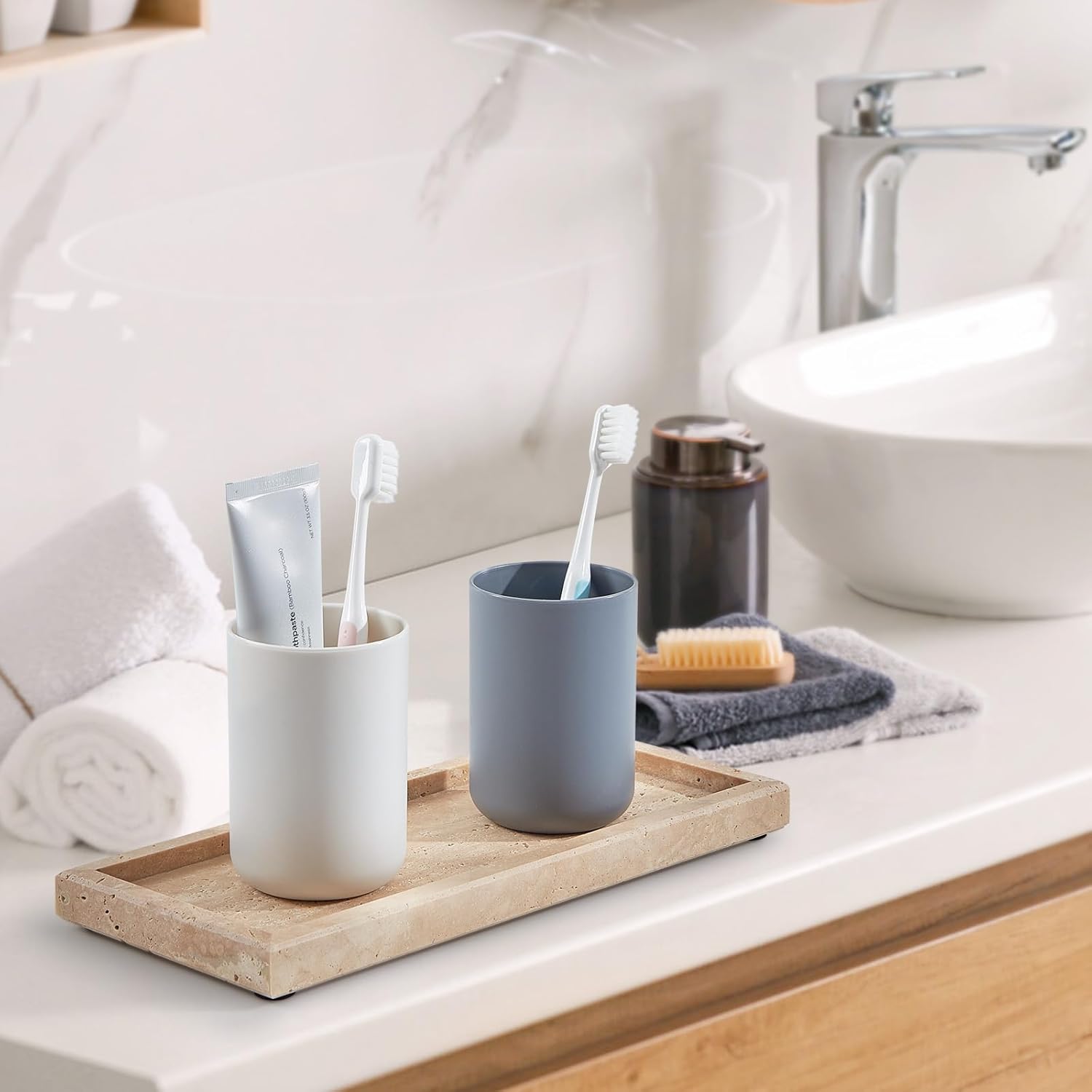 - Premium Natural Travertine Construction: Crafted from 100% genuine, solid travertine, this tray brings unparalleled luxury and durability to your space. Each piece boasts unique, natural veining, ensuring your tray is a one-of-a-kind work of art. Experience the cool touch and substantial weight of real stone that elevates everyday organization.