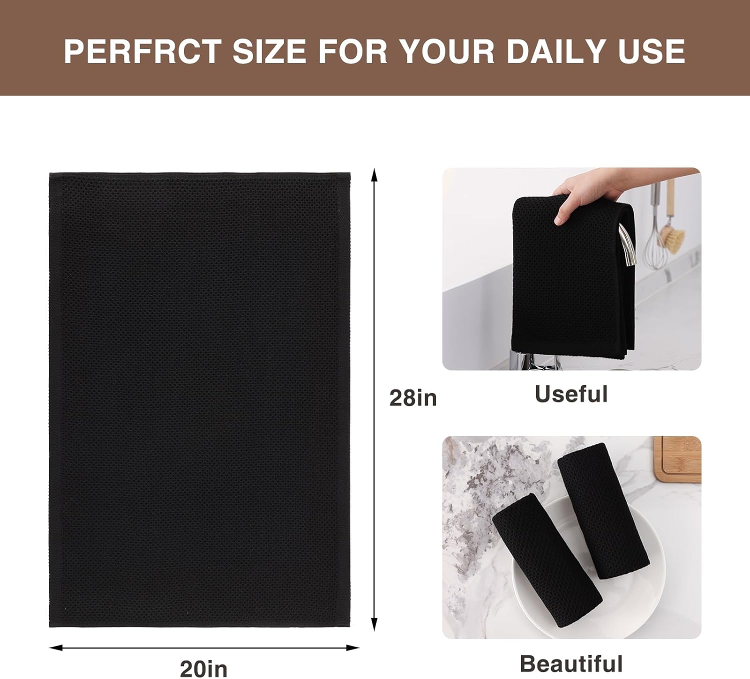 Homaxy 100% Cotton Waffle Weave Kitchen Dish Towels, Ultra Soft Absorbent Quick Drying Cleaning Towel, 20x28 Inches, 12-Pack, Black