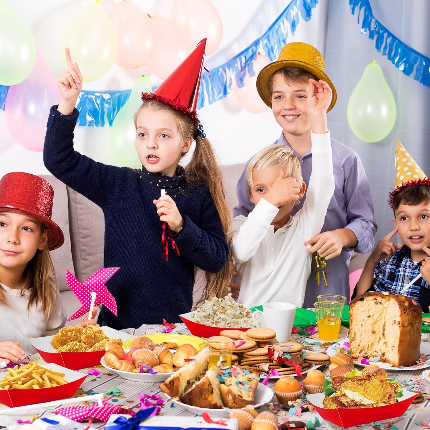 - Easy to Use: Compact and easy to use, they make for ideal party supplies, holding various snacks, like chips, popcorn, hot dogs, sandwiches, tacos, bread, barbecue, tacos, small cakes, desserts, candy, and they are disposable and convenient, simply use them once and throw them away, saving you time and energy, saving your time and efforts