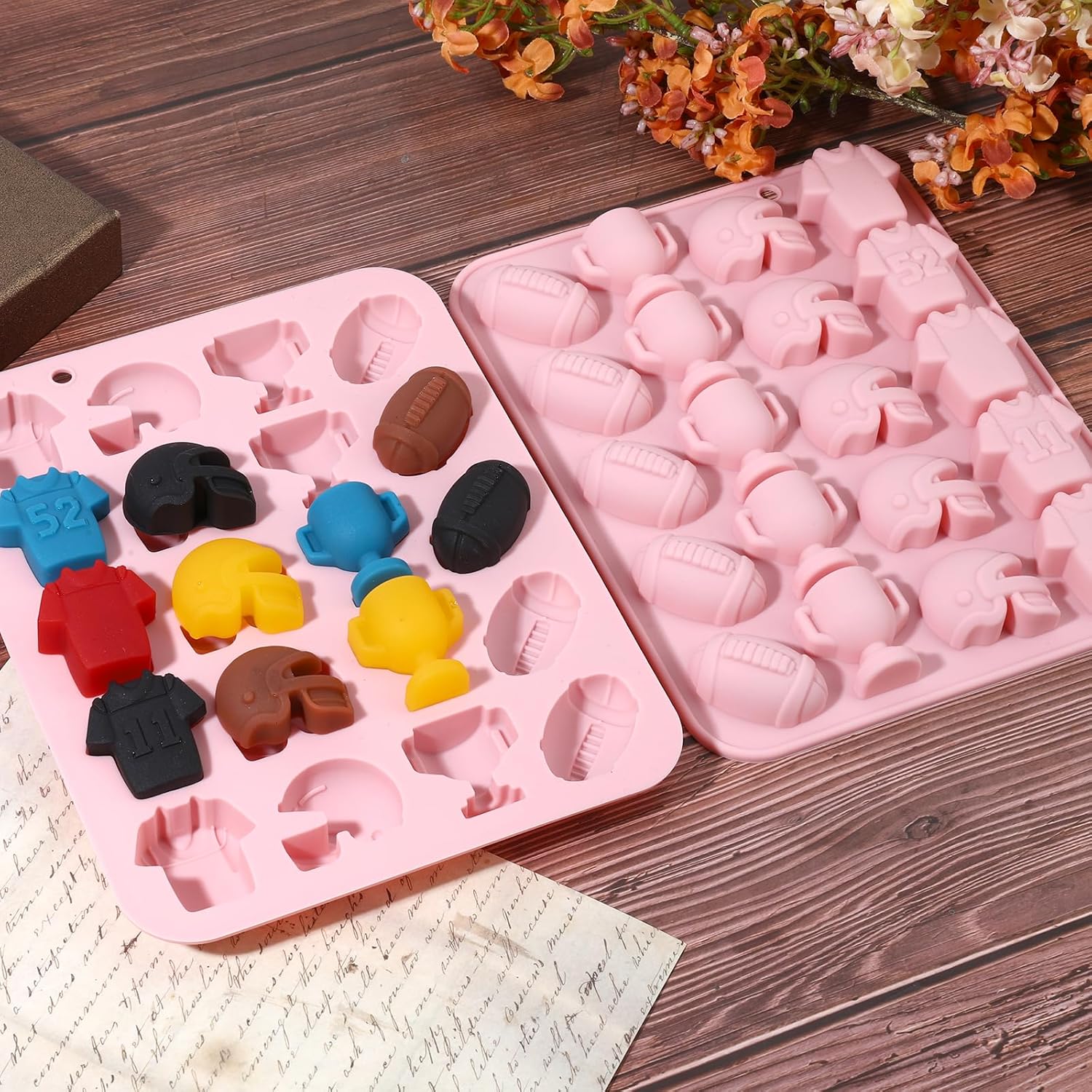 - Package Content: This set includes 4 pink football chocolate molds, each with 20 cavities designed with patterns of footballs, helmets, jerseys, trophies, etc., allowing you to create 80 fun chocolates or candies. Very suitable for sports themed parties or gift giving, with enough quantity to share with family and friends.