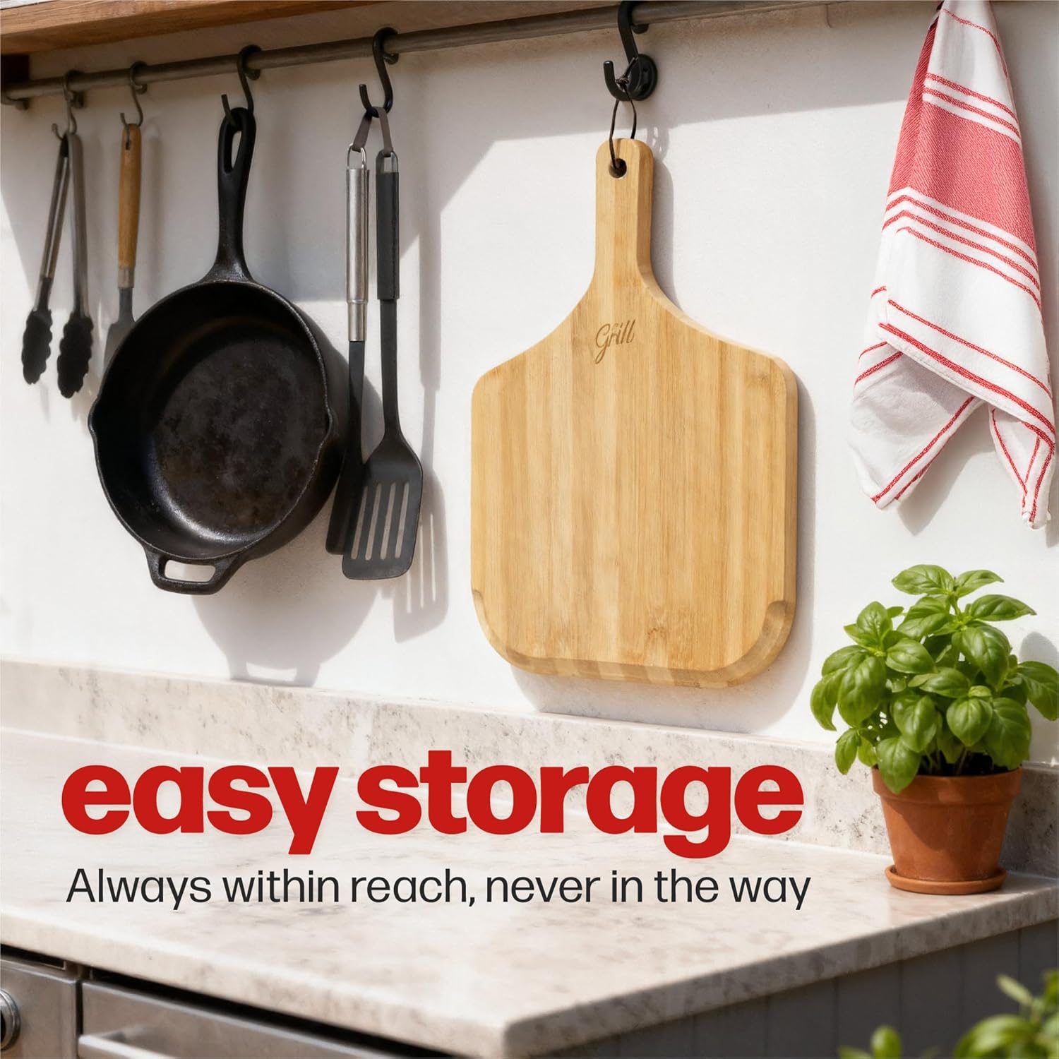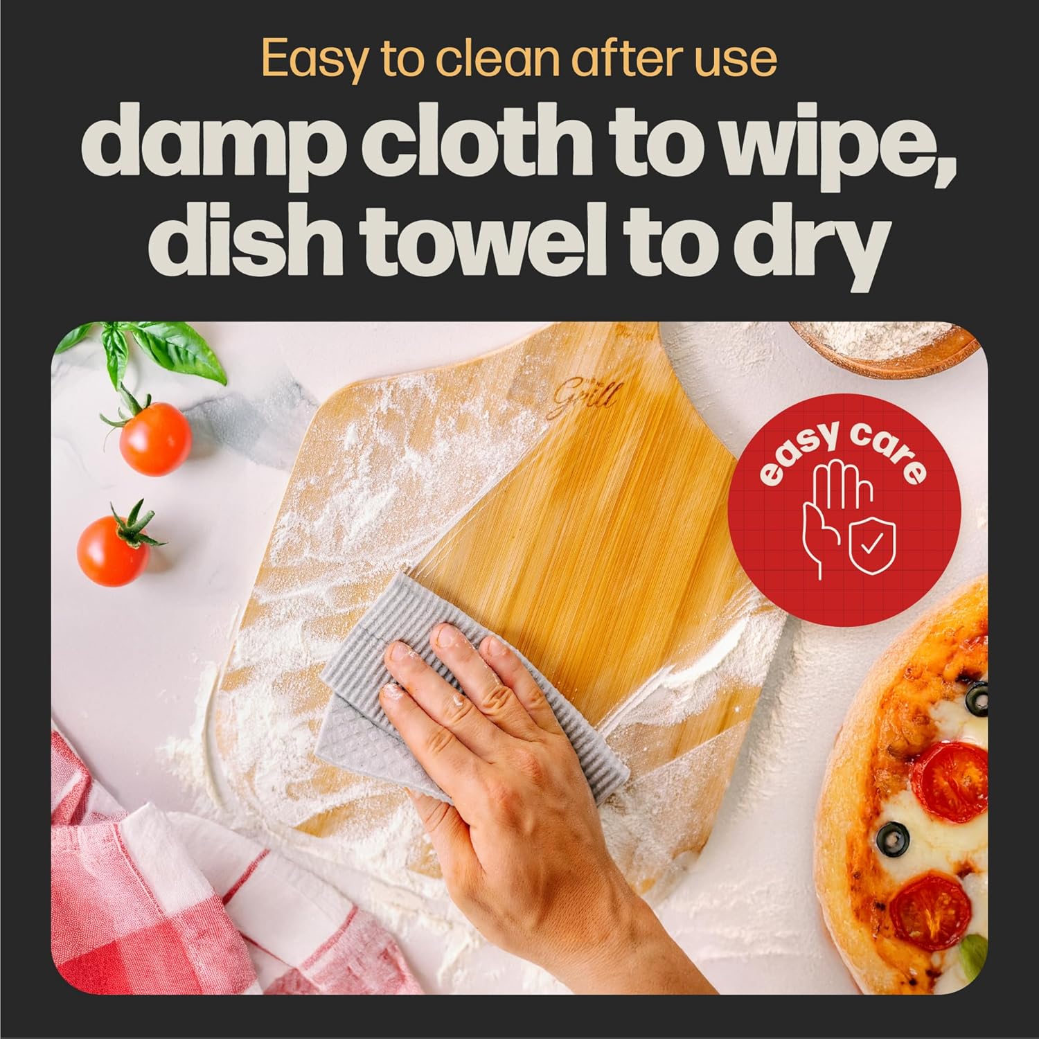 - EASY TO CLEAN & STORE - The smooth, polished surface of our Bamboo pizza peel makes for effortless cleaning—just wipe with a damp cloth and dry thoroughly. A built-in leather hanging loop on the handle allows you to store it neatly, keeping it accessible while saving valuable counter and drawer space.