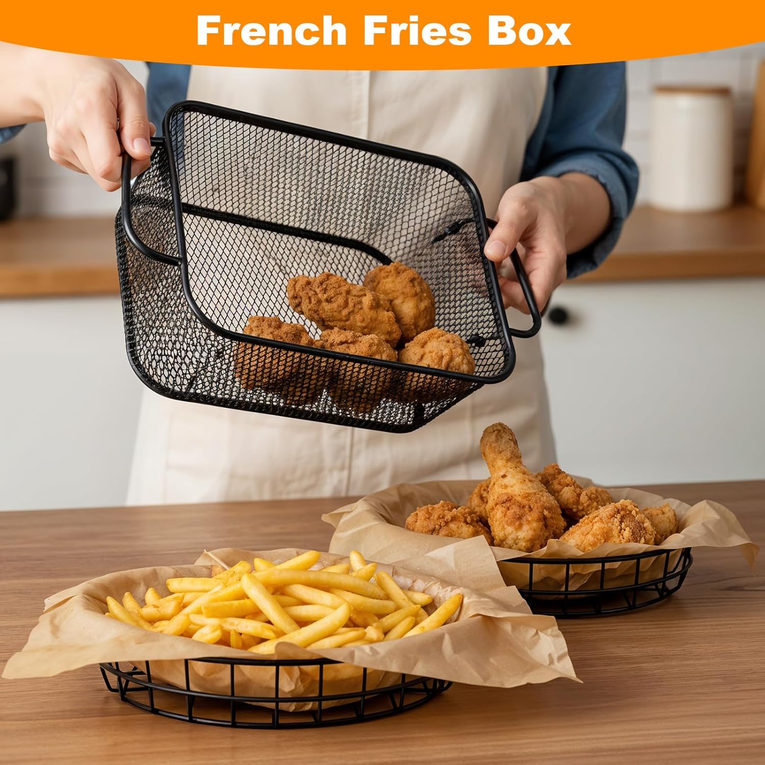 - 【Includes 50 Sheets Deli Wrappers Paper】:These metal bread basket and liners come with 50 sheets of deli wrappers paper, making them easy to use and clean. Whether you're using them as deli baskets or fast food baskets,they provide a hygienic and convenient solution