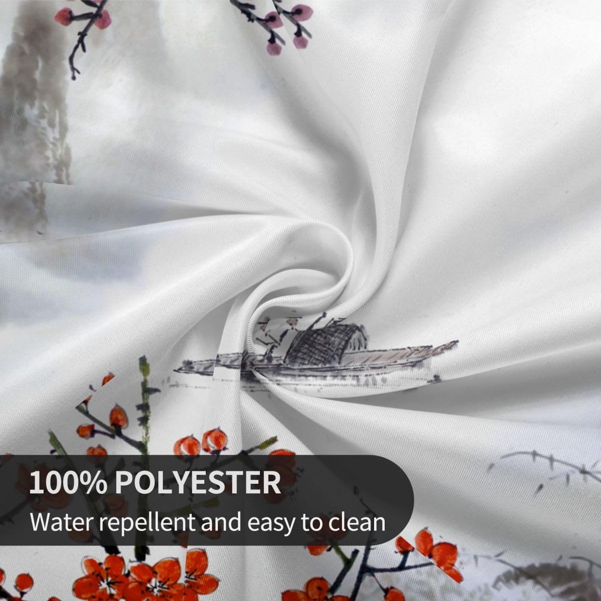 Chinese Landscape Tablecloth, Traditioanal Cherry Blossom Japanese Oriental Vintage Eastern Water Resisitant Wipeable Table Cover for Dining Kitchen Living Room Home Party Holiday Decor 60 inch Round