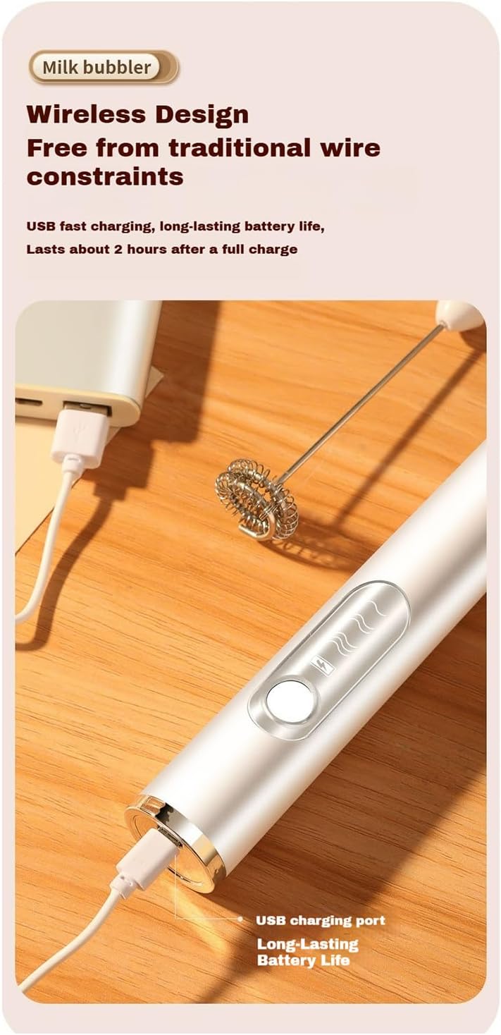 - 30-Second Perfect Froth with Rechargeable Milk Frother Get creamy, bar-quality milk foam for coffee, protein shakes, or chocolate drinks in just 30 seconds. The 304 stainless steel body ensures durability, while ultra-quiet operation won’t disturb your routine.