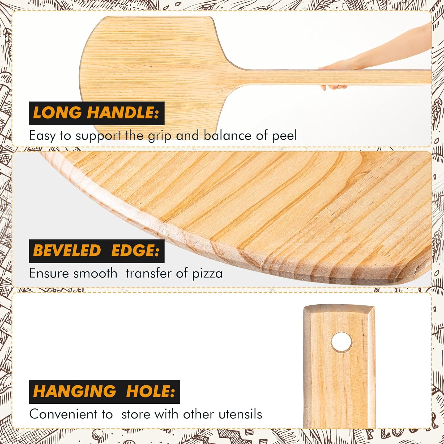 - Convenient Handle: this pizza spatula is designed with a wooden handle; This design can achieve good balance and make it easier and more comfortable for you to pick up this spatula; This handle is perforated and can be hung on the wall