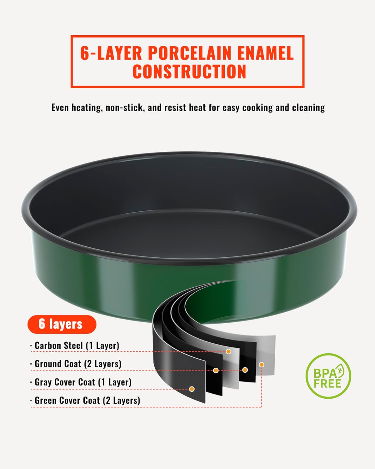 - Free from Harmful Chemicals: All our bakeware holds LFGB, FDA and BPA-free certifications. They contains no harmful compounds like PFOA and PTFE, ensuring a cooking experience that is safe for you, your family and the environment