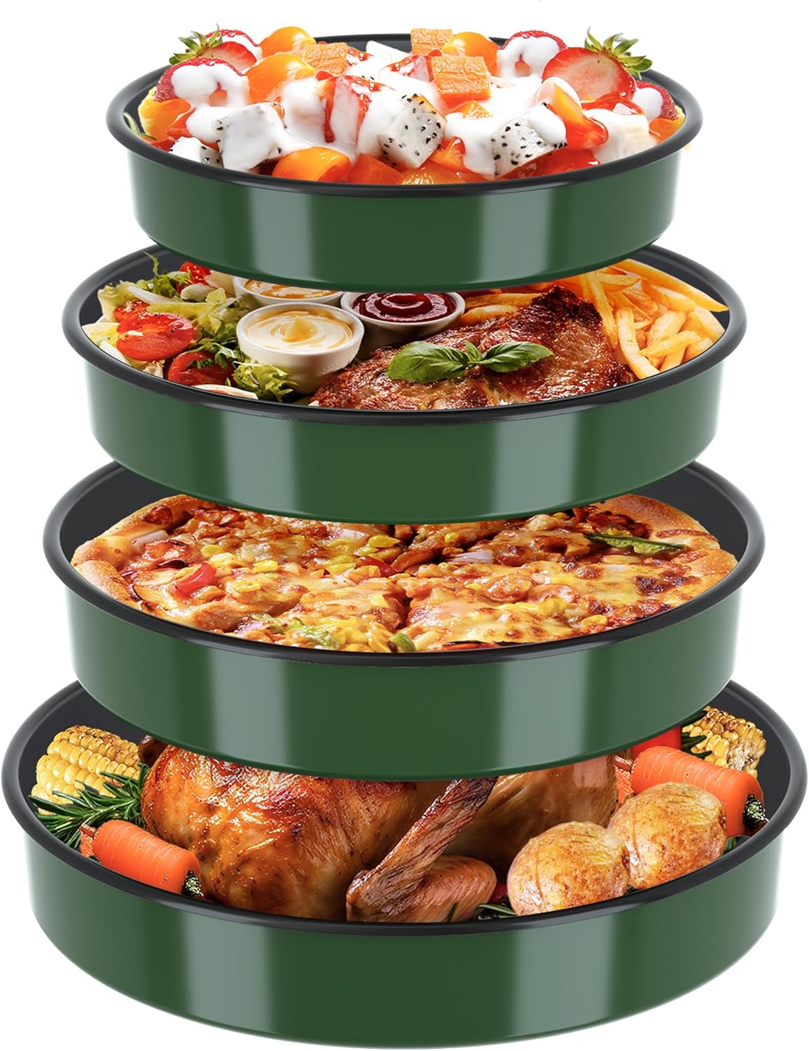- Multifunctional: Premium crafted nesting round baking pan set size: 9/10/12/14 inch is perfect for everyday baking—such as cakes, pizza, and pies as well as for roasting meats, cooking, or serving food on special occasions