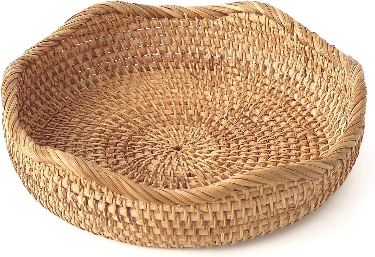HITOMEN Handmade Rattan Bread Baskets Round Wicker Fruit Serving Storage Bowls, Natural Woven Decorative Kitchen Counter Organizing (Honey Brown) S-8.7"