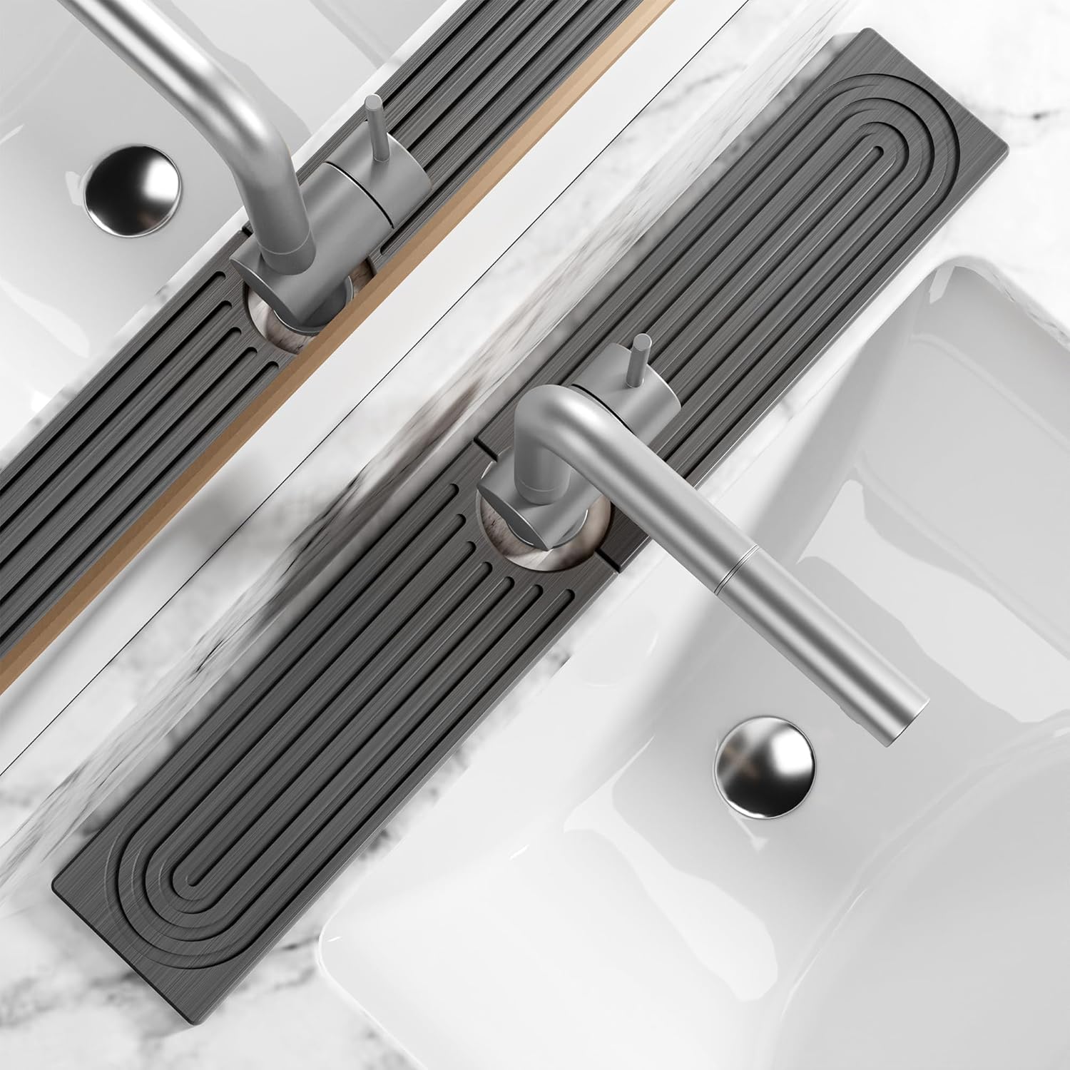 - 【Versatile & Multi-Purpose】Modern design combines style and practicality. More than a sink drip catcher, this versatile stone drying mat for kitchen faucet also as a stone tray for bathroom counter holds soap, toothbrushes, cups, sponges, hand soap, lotion, toiletries, and other items that need to stay dry.Not just a splash guard for kitchen sink area, but also for bathrooms, RVs, bars, cafes, or anywhere you need to keep the sink area dry.