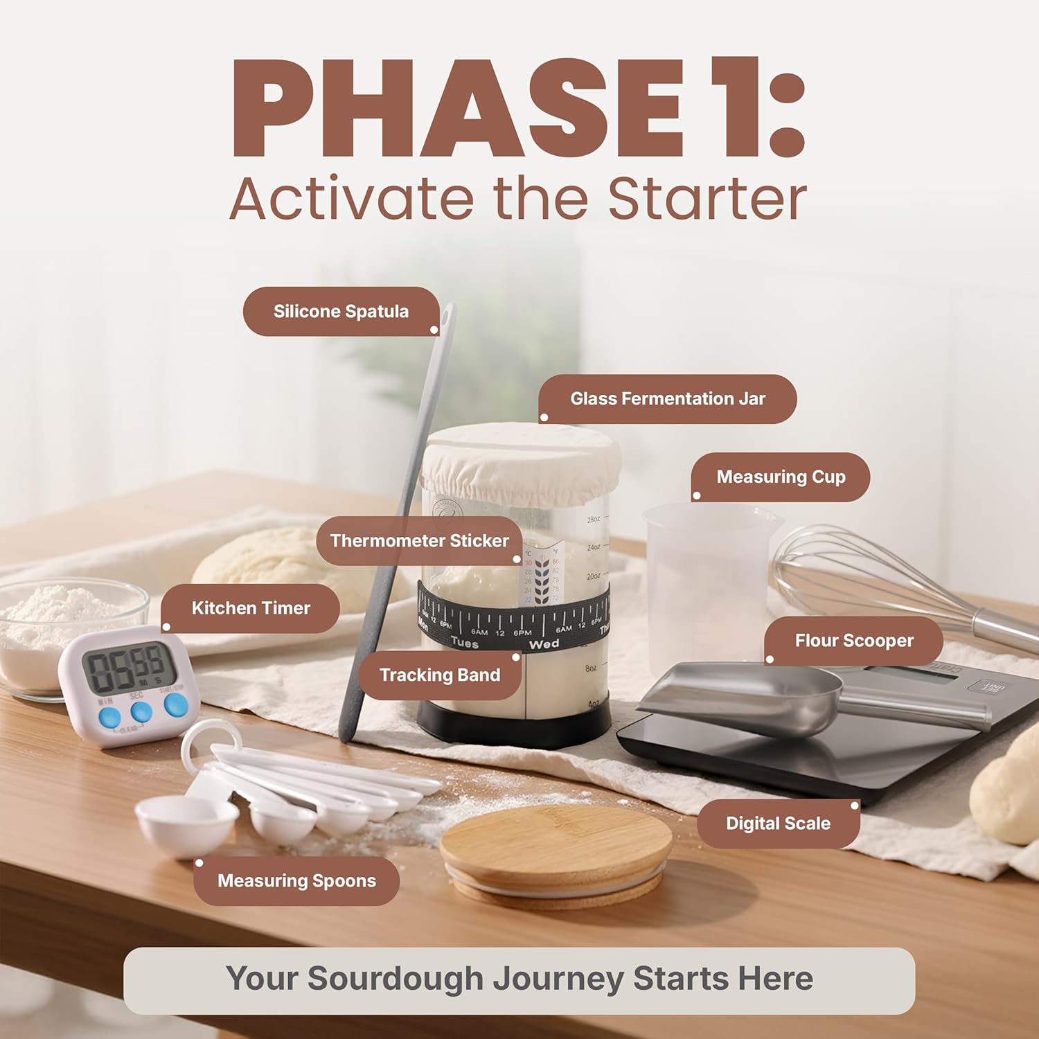 - γ Durable & Reusable Sourdough Kit Built to Last γThis expanded sourdough starter kit features durable, reusable bread making tools and sourdough accessories designed for consistent, long-term use. Every piece stands up to daily baking without wear or damage. Included scrapers, a digital scale, and essential bread baking supplies ensure your kit supports all stages of bread making. Perfect for home bakers seeking a reliable sourdough banneton basket, sour dough starter jars, and comprehensive baking tools & bakery supplies that last through countless loaves.