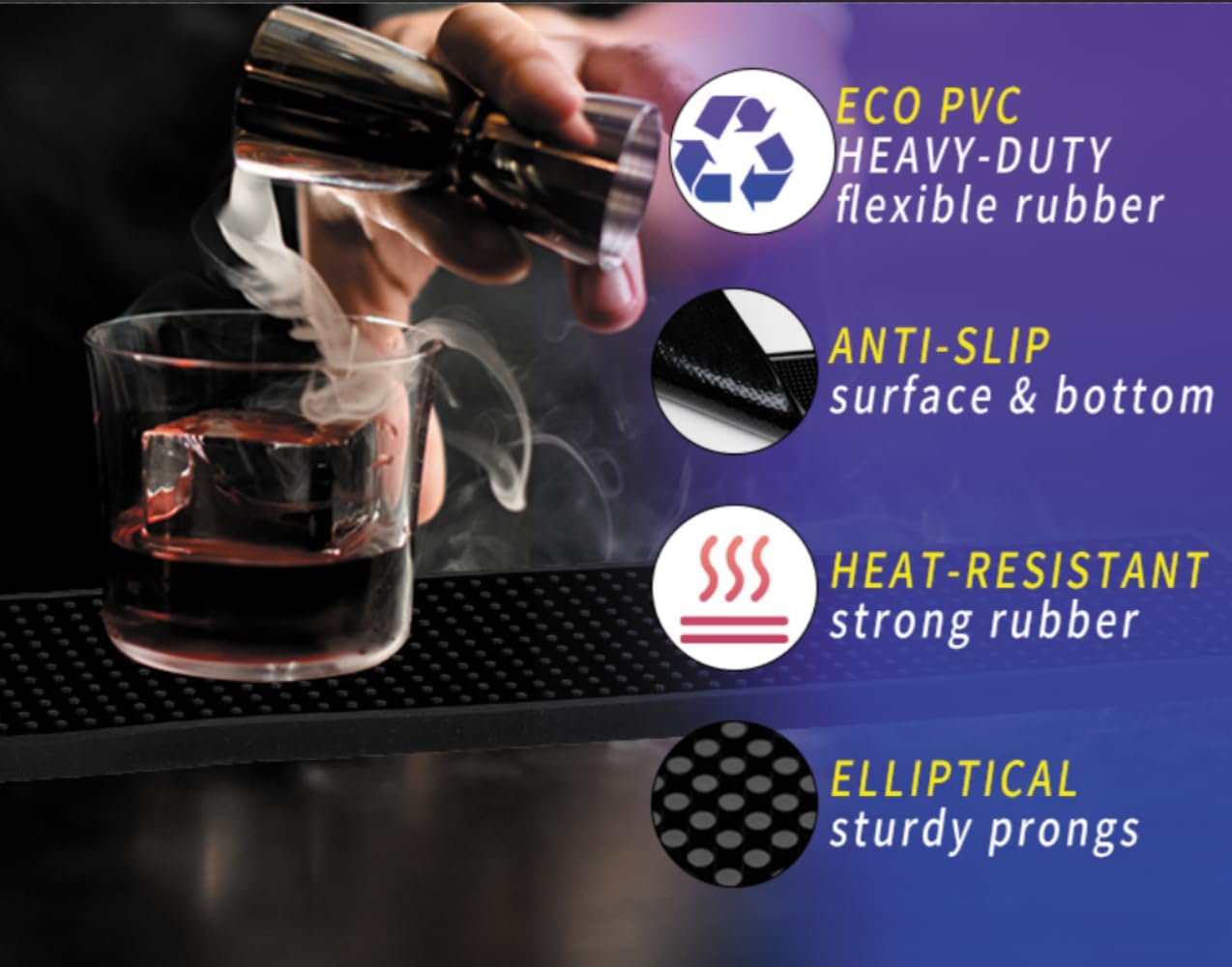- Quality Material: our bar mat set is made from non toxic flexible rubber, ensuring a safe and healthy option for your home or workplace; Designed to be both thick and durable, these mats provide a long term solution to protecting your surfaces while offering a sleek black aesthetic look