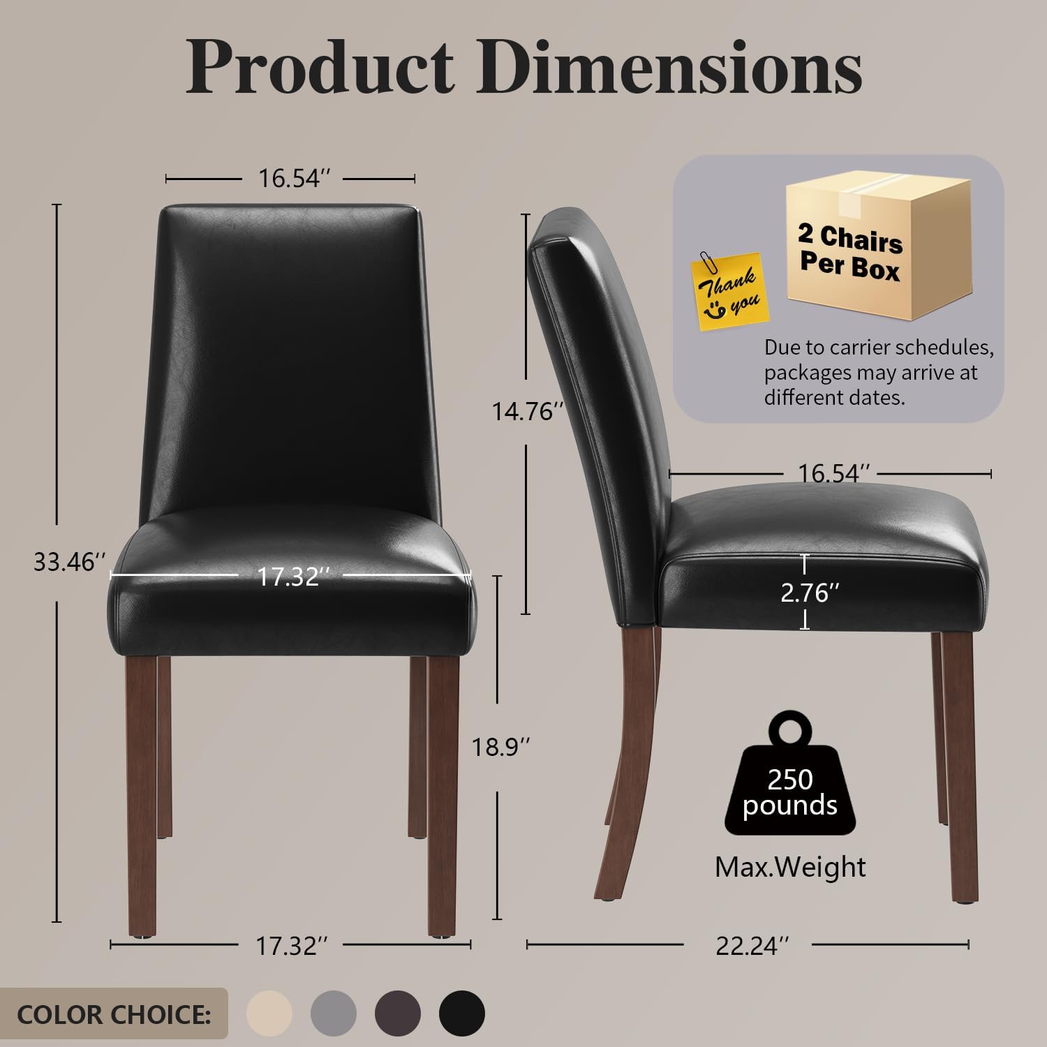 Dining Chairs Set of 2, Modern Faux Leather Dining Room Chair, Upholstered Parsons Kitchen Chairs for Restaurant & Cafe- Black