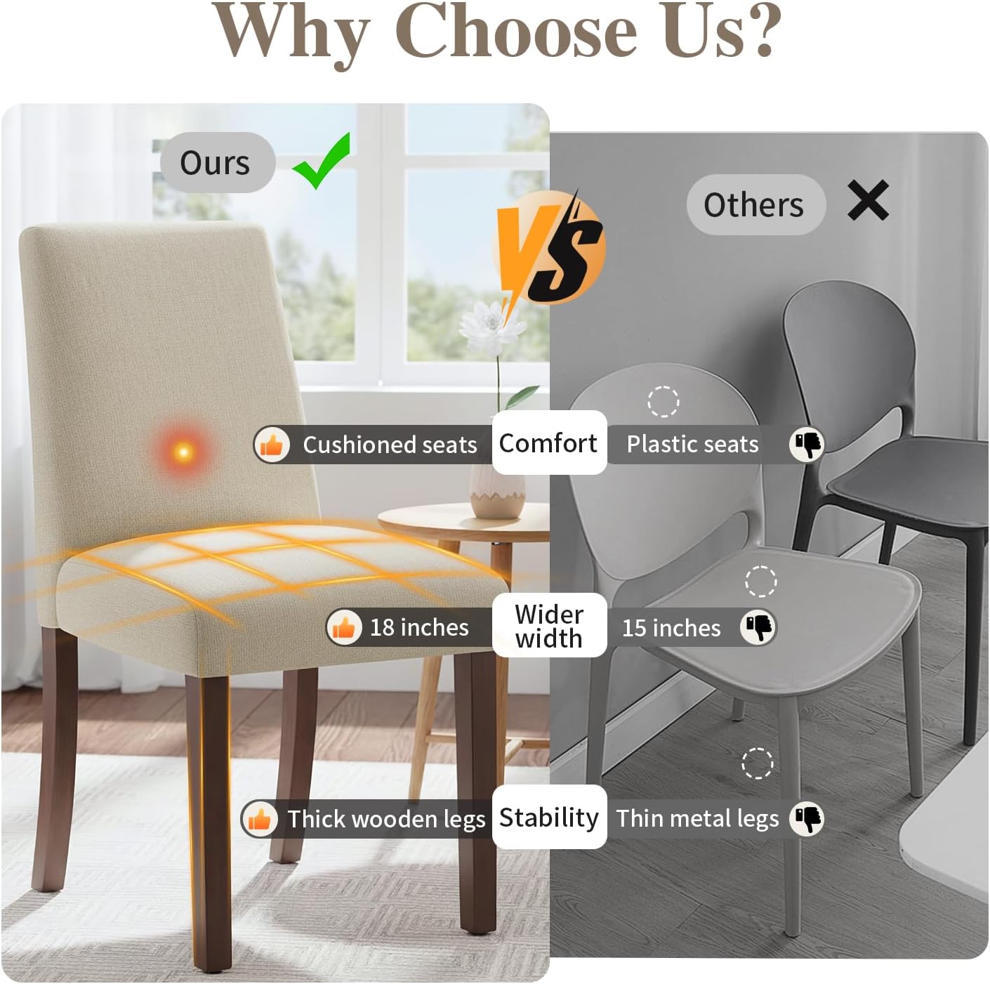 - Sturdy & Durable: Built with a sturdy wooden frame and breathable upholstery, our kitchen chairs offer lasting comfort and strong support. Featuring solid rubberwood legs and non-scratch footpads, they remain firmly in place while protecting your floors