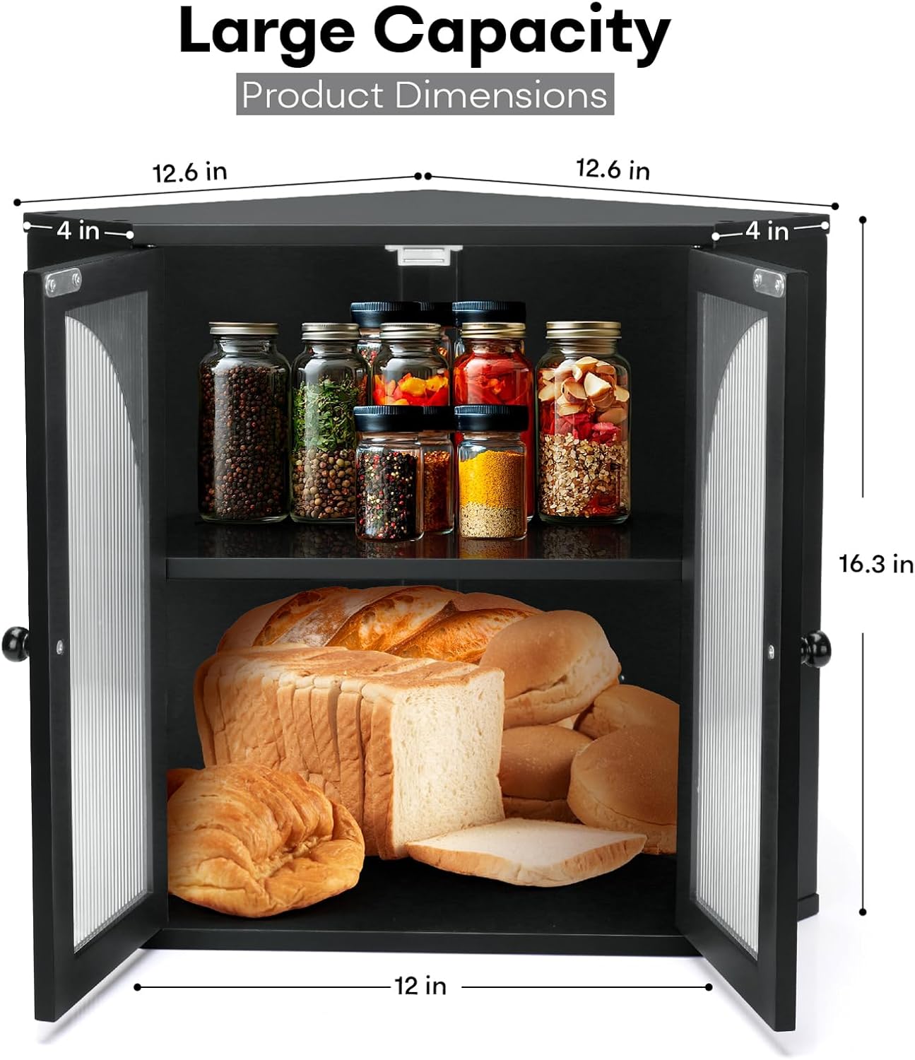 - Secure Magnetic Lock & Acrylic Doors: Our corner bread storage bin features a magnetic door that ensures a tight and secure closure every time. Designed with dual doors, this bread container provides excellent access to your baked goods. The transparent doors, with their elegant water wave texture, turn your delicious treats into a showcased masterpiece.