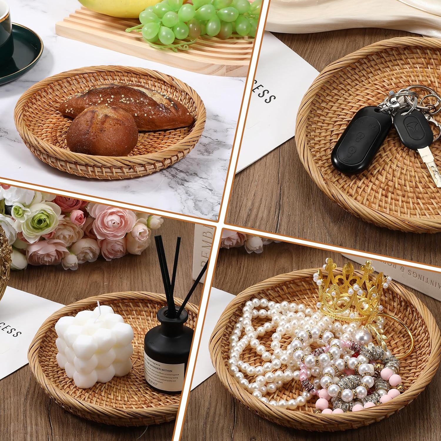 - Versatile: The small woven basket perfectly blends functionality with beauty. Our key holder bowl is perfect for organizing kitchen essentials, bathroom toiletries, or office supplies, and its neutral color complements any color scheme