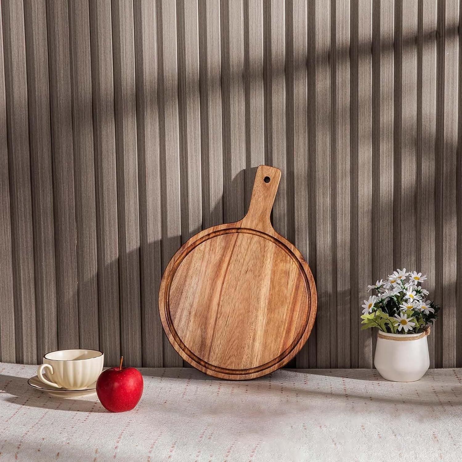 Pizza Cutting Board, Wood Charcuterie Boards, Round Cuttings Board for Woods Kitchen Utensils, Wood Cutting Board with Handle, Wooden Serving Tray for Pizza Bread Cheese Fruit Vegetables